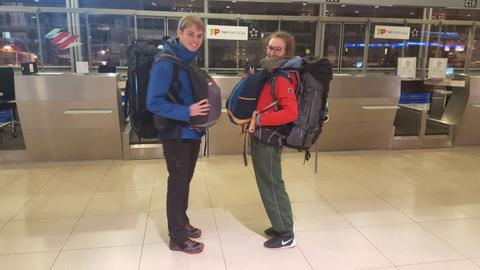 Die letzten und allerletzten nötigen und unnötigen (Thomas !) Reisevorbereitungen sind erledigt und wir sind mit gepackten Rucksäcken am Flughafen Köln/Bonn trotz Schnee in der Eifel auch dank unserer persönlichen Escorte gut angekommen.