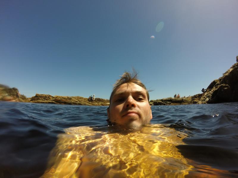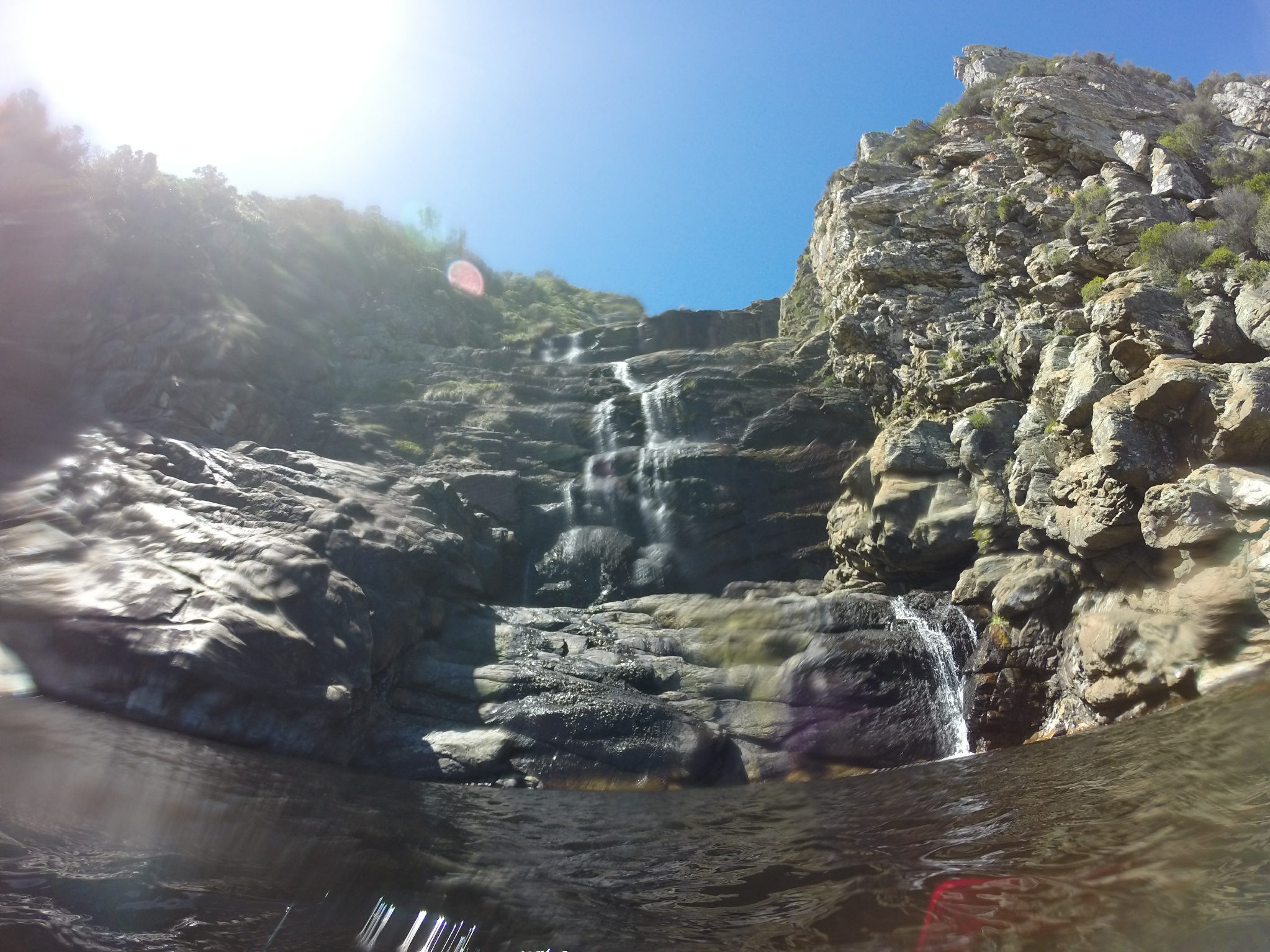 Es sind noch einige andere Leute da und schwimmen vor dem Wasserfall oder springen von diversen Absätzen ins Wasser.