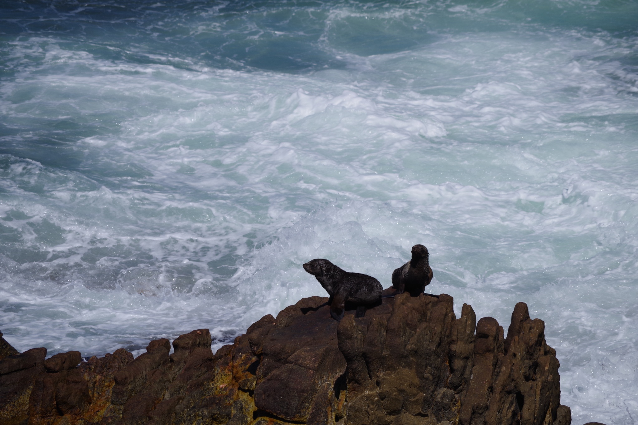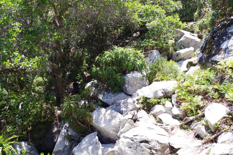 Endlich stehen wir aber vor dem Otter Trail mit dem Hinweis, dass dieser Weg als "schwer" gekennzeichnet ist und daher nur von fitten Wanderern begangen werden sollte - also wie gemacht für uns! Für die ca. 3 km zum Wasserfall und wieder zurück werden dabei 3,5 Stunden veranschlagt - und bald wissen wir auch warum. Der Weg geht hauptsächlich mit wenigen Markierungen über die Felsen an der Küste - feste Schuhe sind sehr zu empfehlen!