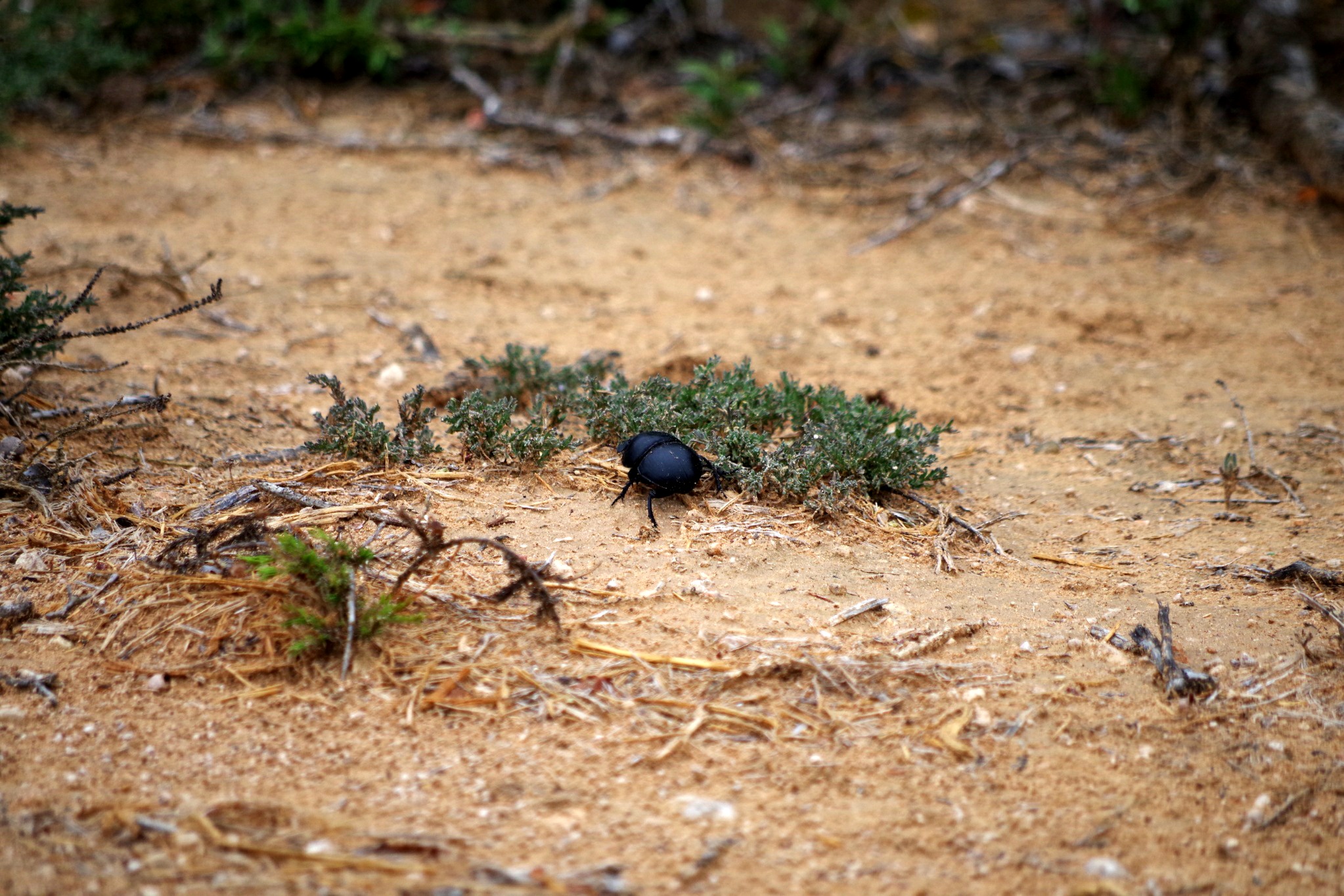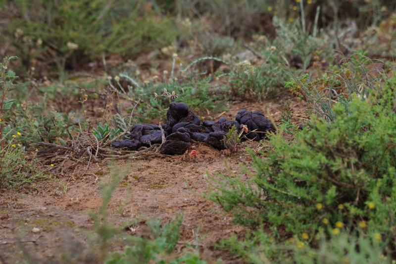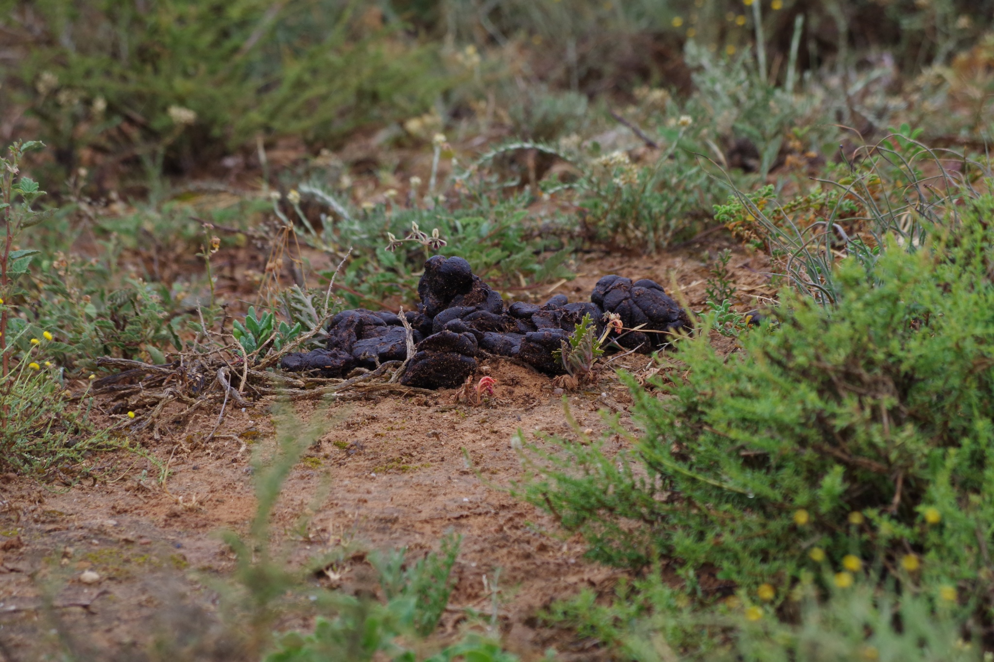 Laut Parkregeln soll man nicht über die Hinterlassenschaften der Elefanten fahren, da man damit auch Mistkäfer überfährt und die hiesige Art vom Aussterben bedroht ist. Leider ist das Ausweichen nicht immer ganz so einfach, so viel wie hier rum liegt. Aber da wir natürlich auch den Mistkäfer sehen wollen - immerhin gibt der 8 Punkte für das "Sichtungsspiel", was auf der Nationalpark-Karte ist. Also immer mal wieder anhalten und gucken ob gerade einer seine Kugel am rollen ist.