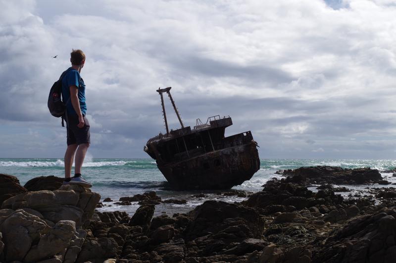 Ca. 2 km weiter liegt ein Schiffswrack am Strand -