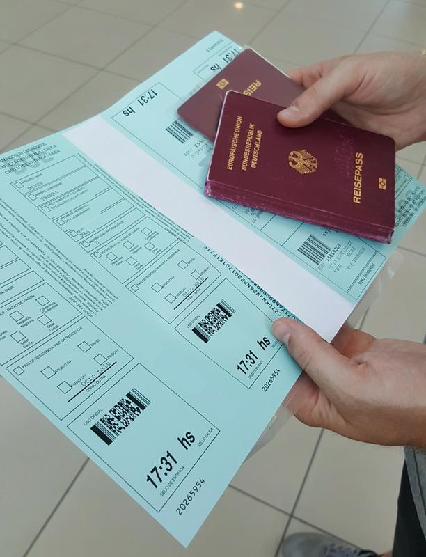 Schnell haben wir unsere Boarding-Pässe in der Hand und gehen zur Aus- und Einreise. Hier sitzen an jedem Schalter je ein argentinischer und ein uruguayanischer Beamter, die uns nacheinander die Stempel in die Pässe drücken. Schnell sind unsere Pässe also um 2 Stempel erweitert und wir können auf die Fähre gehen.