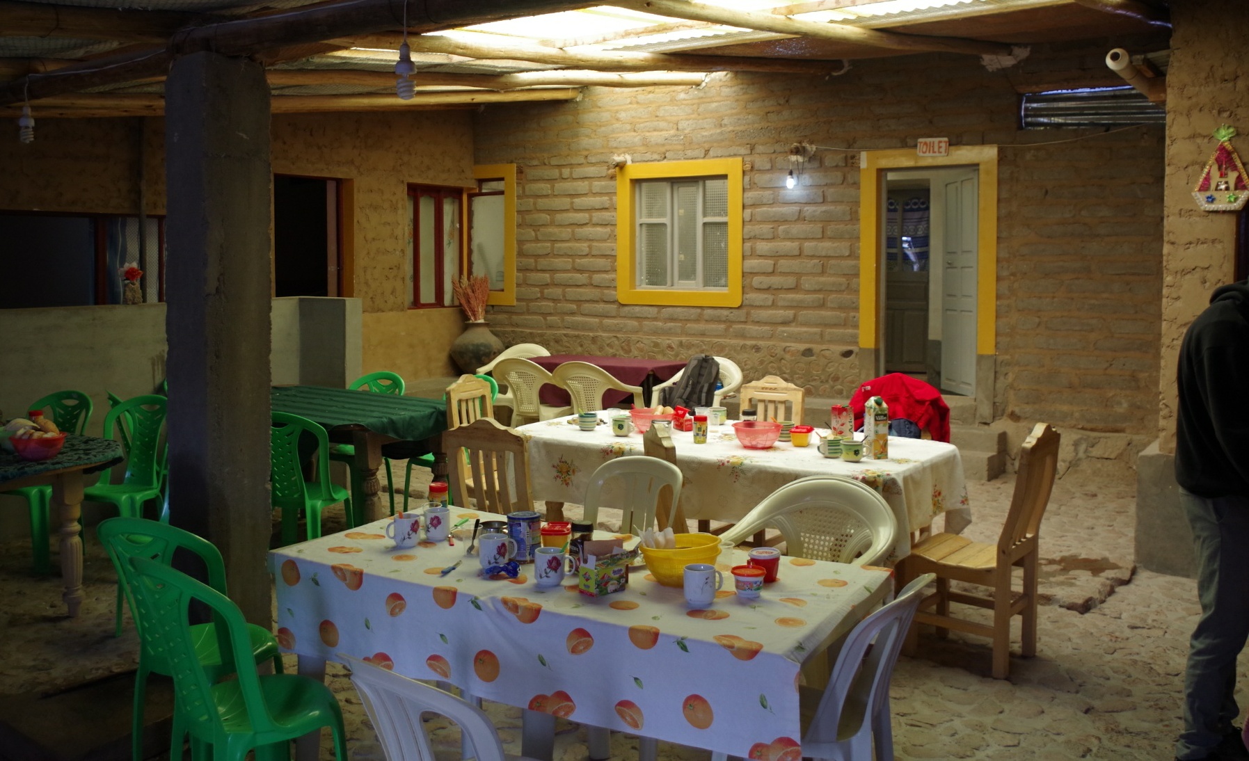 Es sind noch 2-3 andere Jeeps hier angekommen, wobei jede Gruppe ihr eigenes 6-Bett Zimmer bekommt. Alles ist eher spartanisch, Heizung gibt es keine, eine heiße Dusche angeblich gegen eine kleine Gebühr, wobei die Dusche vollgestellt ist und auch kein Wasserhahn zu finden ist. Duschen fällt für heute also aus. Die Betten sind bequem und haben mehr als genug Decken um nicht zu frieren, auch wenn dicke Socken empfehlenswert sind.