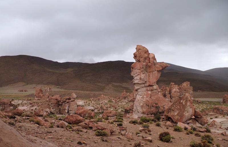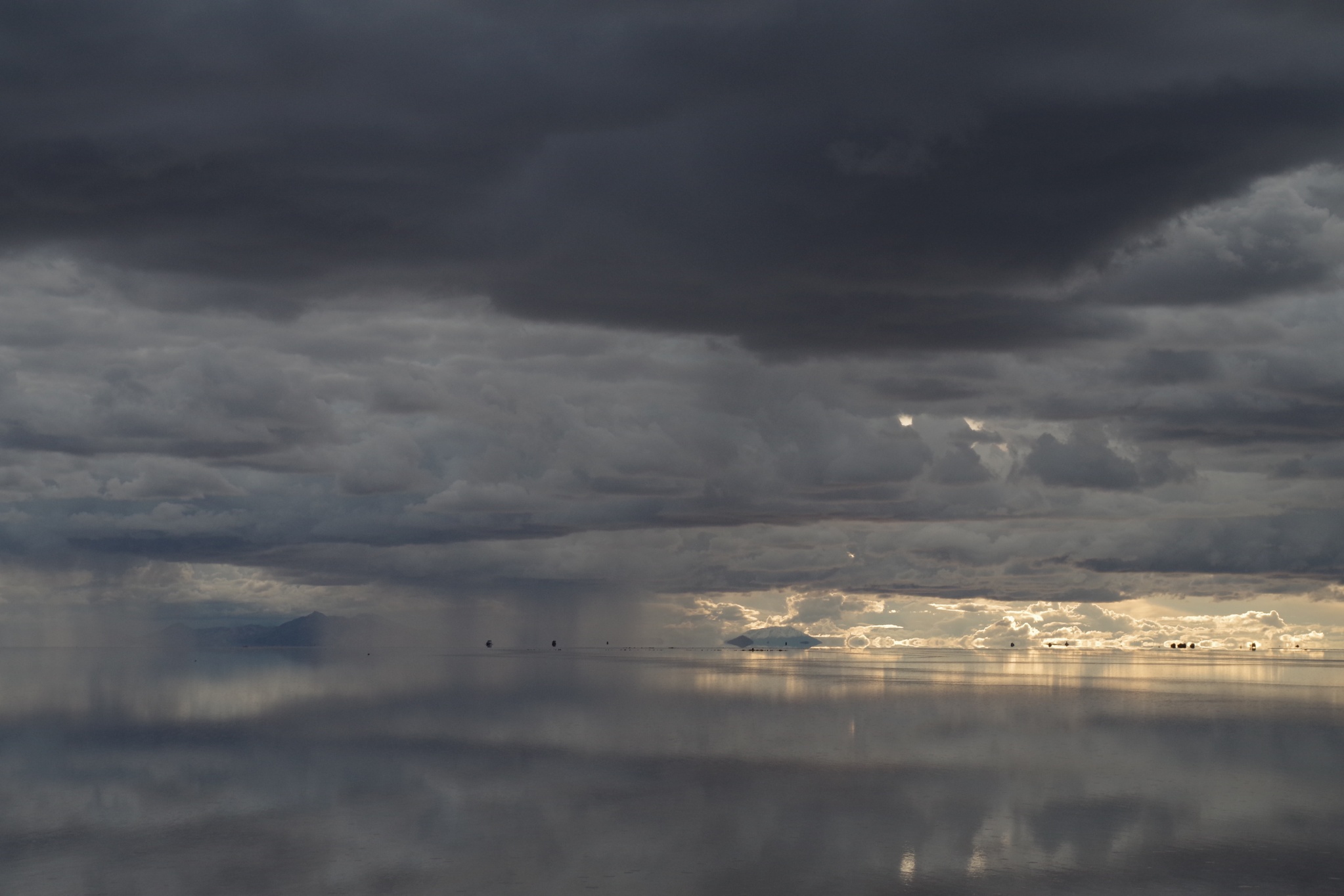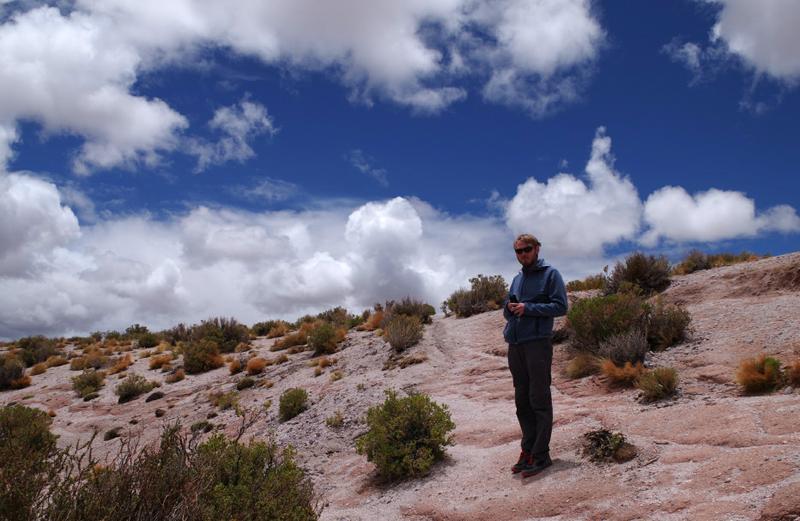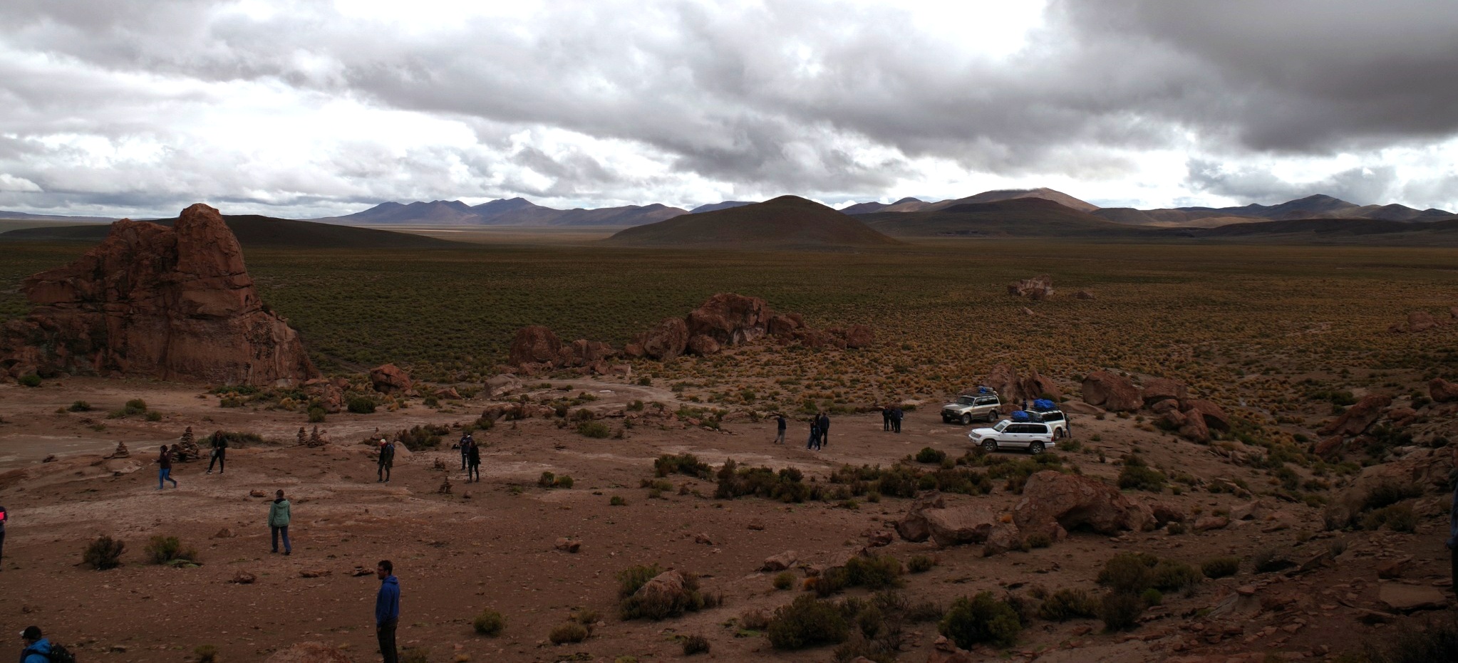 Wir müssen letztendlich entscheiden, ob wir jetzt zum Sonnenuntergang oder lieber am frühen Morgen zum Sonnenaufgang in die Salar fahren wollen. Das Wetter ist zwar gerade gut, aber in einiger Entfernung hängen wieder dicke schwarze Wolken über der Ebene und wir überlassen Gustavo die Entscheidung, der die Gegend kennt. Er erreicht einige Kollegen, die in der Salar unterwegs sind und entscheidet dann, dass wir noch heute Abend hin fahren. Eine gute Entscheiung!