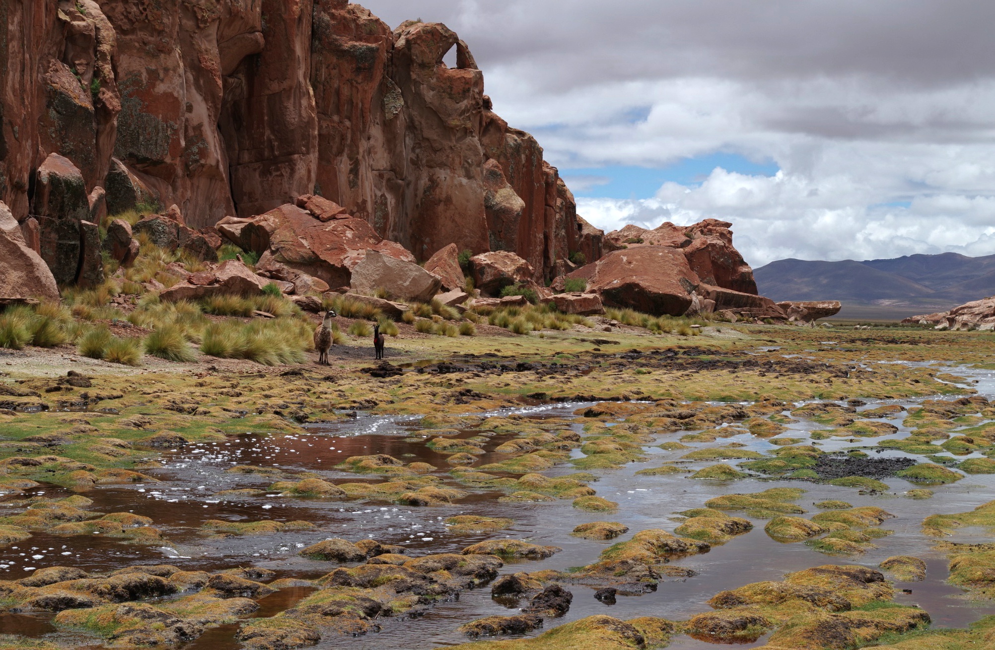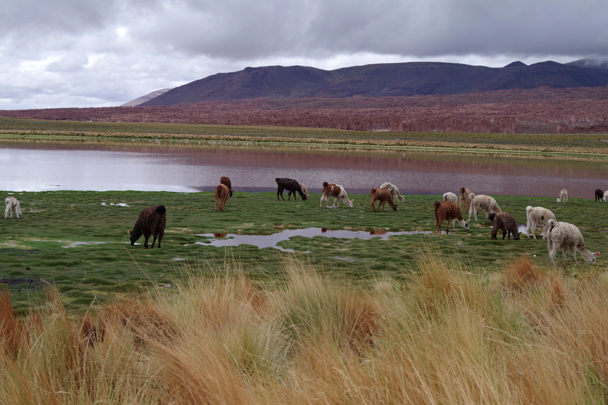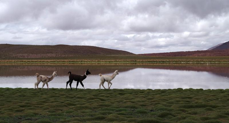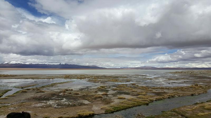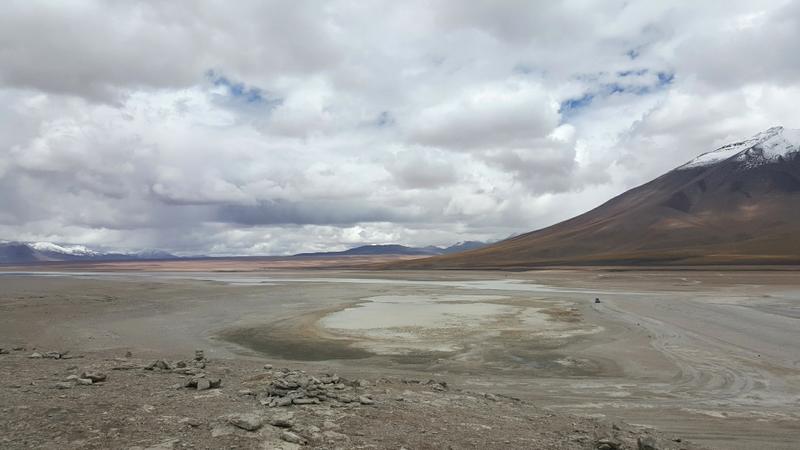 Der letzte Stop vor unserem Ziel für heute ist die Laguna Colorada. Sogar der Regen lässt etwas nach, als wir ankommen und uns zu Fuß in Richtung Wasser machen...
