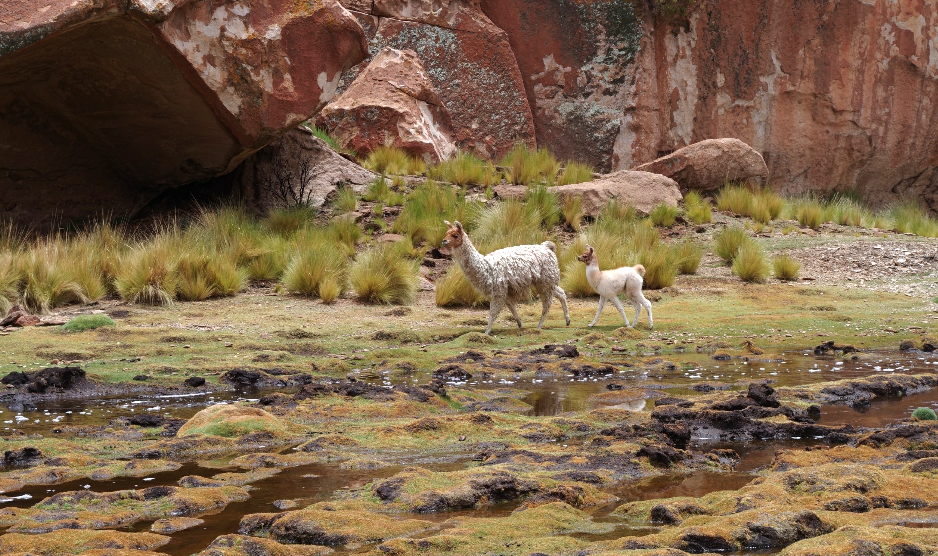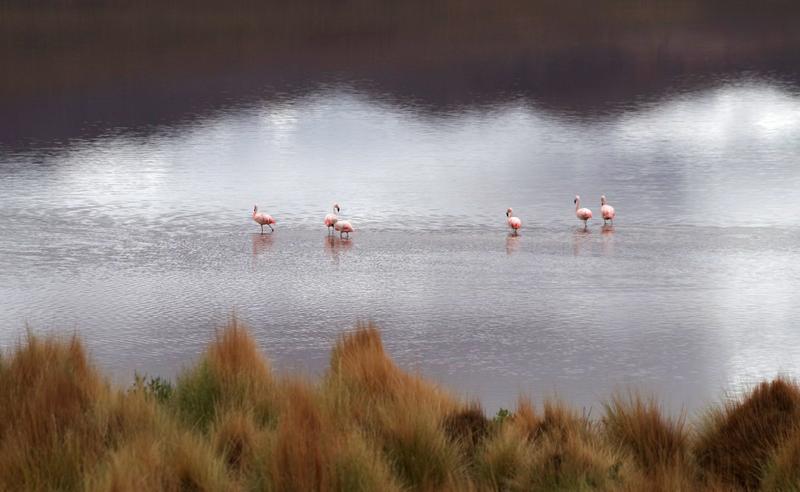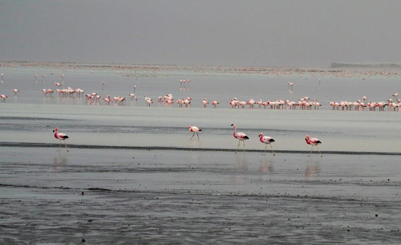 Schon während der Fahrt haben wir neben Lamas und Alpacas immer mal wieder Flamingos gesehen, aber nicht annähernd so viele wie hier. Schon witzig diese rosa Vögel, die hier oben durch das Wasser staken. Die Vögel haben hier oben in den Lagunen eine Nische für sich gefunden und fischen aus den Lagunen.