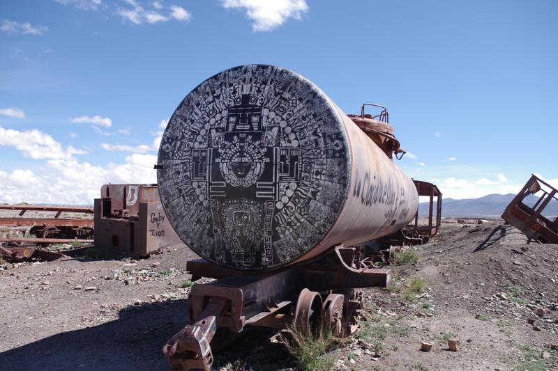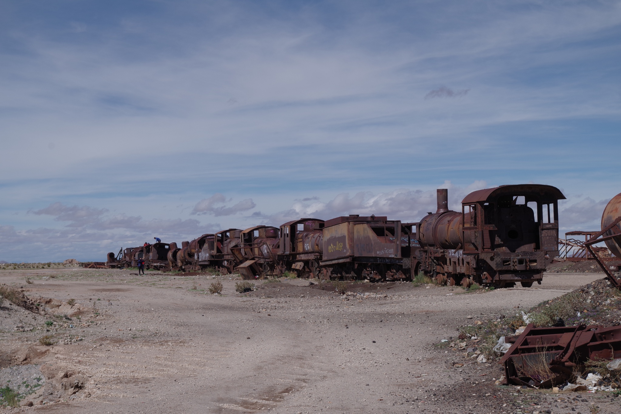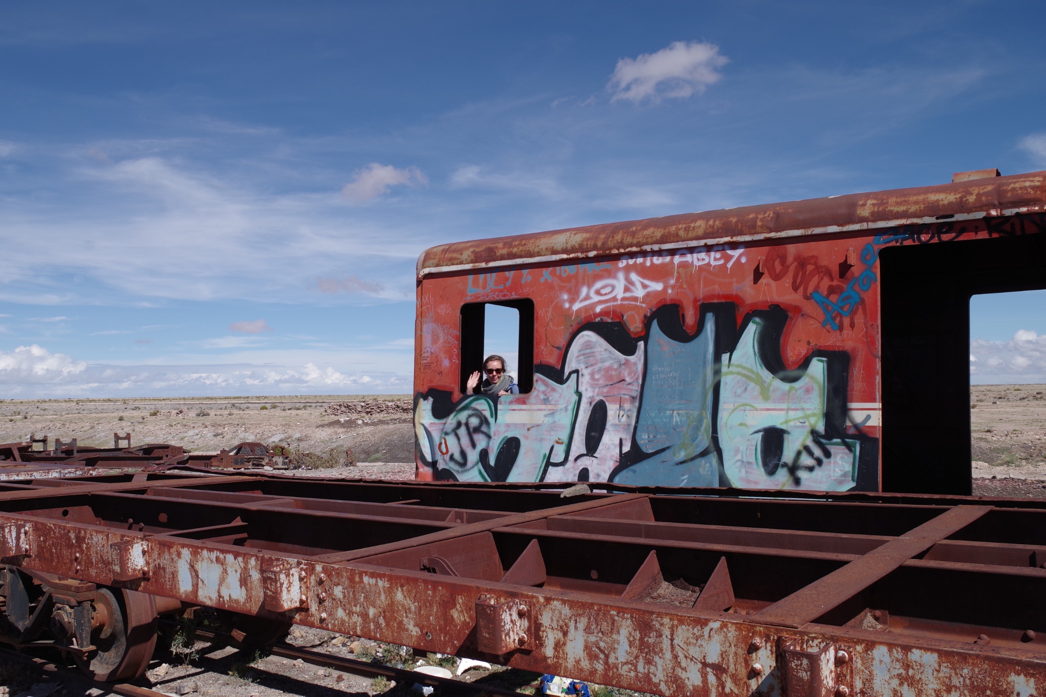 Der erste Stop des Tages führt uns auf den Eisenbahnfriedhof nur wenige Kilometer außerhalb des Zentrums von Uyuni. Ein beliebtes Touristenziel rund um die Salar. Und jetzt wissen wir auch, warum Gustavo so zum Aufbruch gedrängt hat:...