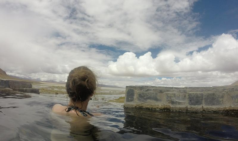 Hier haben wir die Möglichkeit für ein paar Pesos in den heißen Quellen direkt neben der Laguna zu baden. Bei den kühlen Außentemperaturen sind die heißen Quellen eine angenehme Abwechslung...