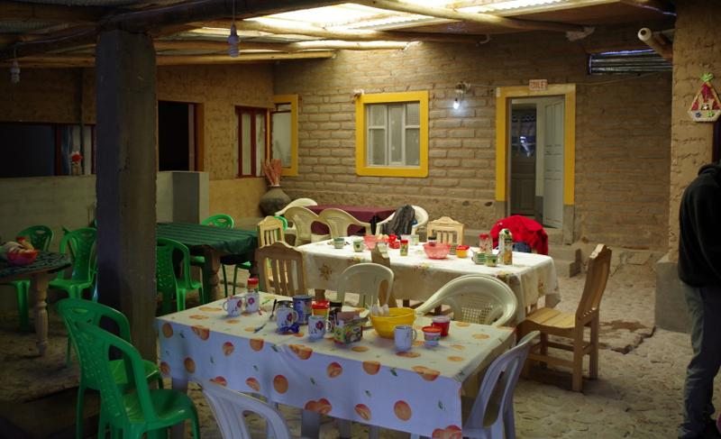 Ein kleiner Engpass sind leider die zwei Toiletten, aber auch das ist kein Problem schließlich sind wir irgendwo mitten in den Anden in Bolivien! Auch beim Zähneputzen wird einem das noch einmal bewusst. Die Qualität des Leitungswassers reicht noch nicht einmal zum Zähneputzen. Auf Salat oder ungeschälte oder ungekochte Lebensmittel sollte man verzichten - schon beim Salat zum Mittagessen haben wir das allesamt fröhlich ignoriert.