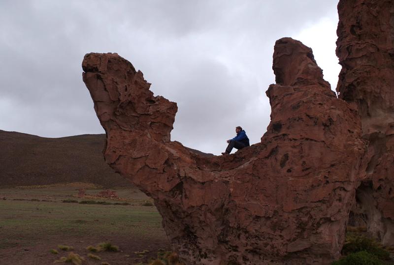 Selbst die gefürchtete Rückbank, auf der man quasi im Kofferraum sitzt und keinen Fußraum hat, ist noch ganz angenehm, da wir immer wieder die Plätze tauschen. Lediglich Denis, der langbeinige Franzose, bleibt die ganze Tour als Co-Pilot auf dem Beifahrersitz. Zum Einen ist er der Größte der Truppe, zum Anderen spricht er als Einziger fließend Spanisch und unterhält Gustavo bzw. arbeitet als Dolmetscher für uns. So erfahren wir über die nächsten Tage durchaus einige Details und Interessantes über das Land. Ok, dass der Jeep schon über 600.000 km auf dem Tacho hat, ist ein Detail, dass nicht unbedingt Vertrauen erweckt, vor allem in Kombination mit Geschichten und Berichten über betrunkene Fahrer, sodass es auf solchen Touren durch Bolivien wohl schon vorkam, dass die Passagiere den Jeep teilweise selber fahren mussten.