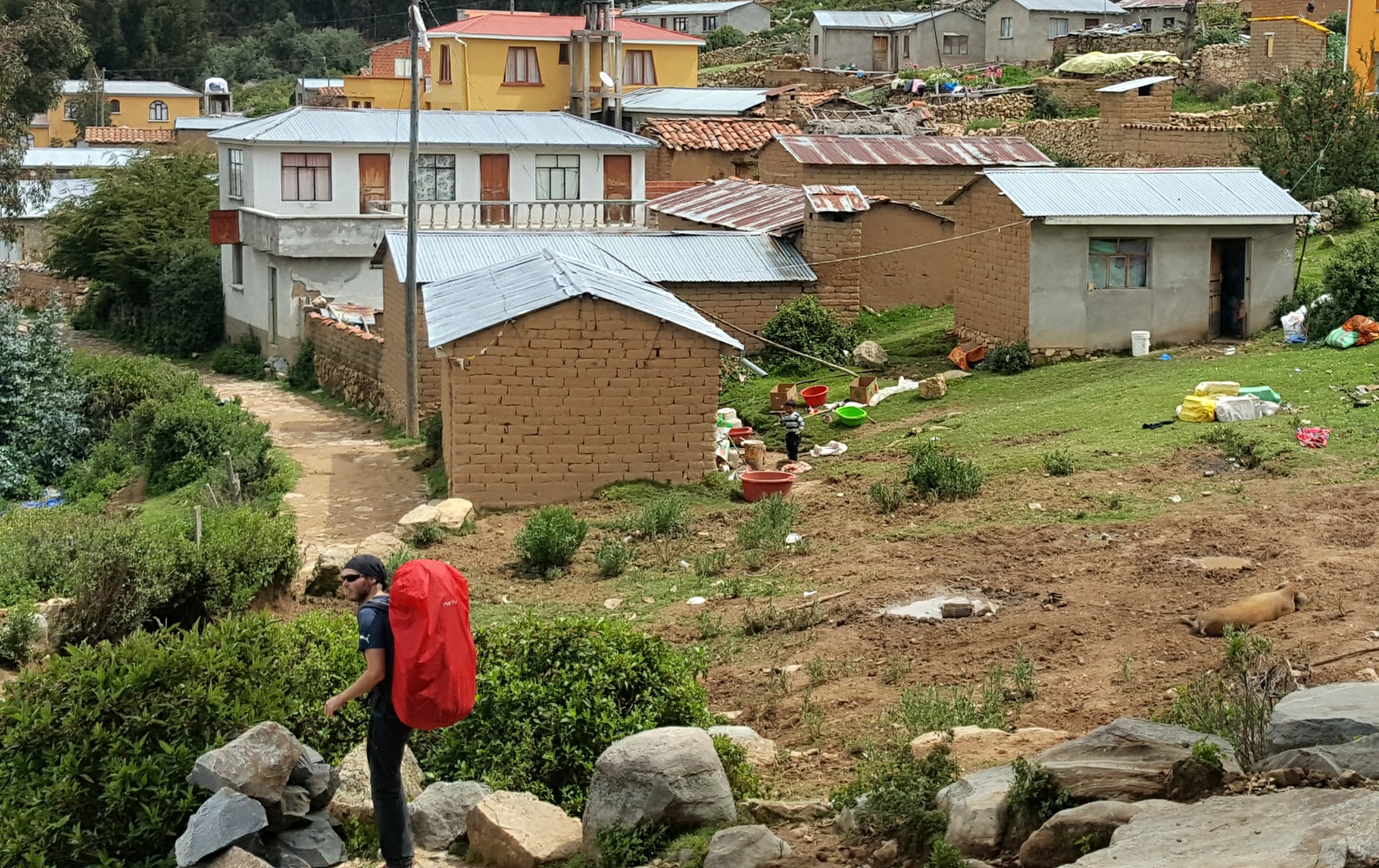 Vom Steg aus gibt es hier nur eine mögliche Richtung: nach oben! Und zwar gute 200 Höhenmeter, hauptsächlich über alte Inka-Treppen bis auf über 4000 m. Dabei laufen wir an einigen Hostels vorbei. Im gesamten Dorf scheint gebaut zu werden, um den Touristenströmen eine Unterkunft oder...