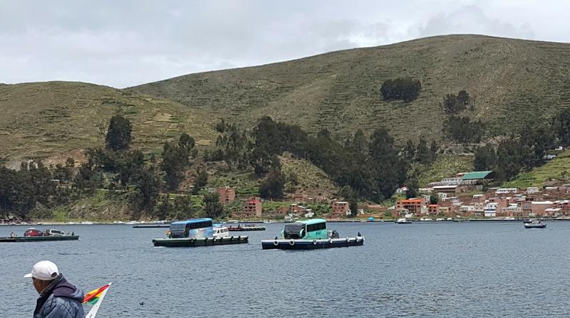 Die kurze Fahrt täuscht über die eigentlich Größe des Sees hinweg. Diese Engstelle teilt vom Titicaca-See einen kleinen Teil ab, von dem wir bisher nur den wesentlich kleinere gesehen haben. In der Realität gleicht der See, der über 16 Mal so groß ist wie der Bodensee, eher einem Meer als einem See.