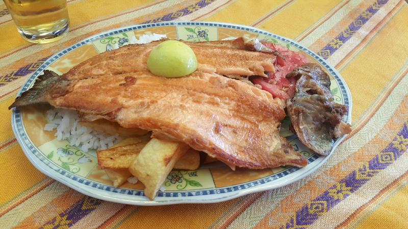 Erleichtert und zufrieden schlendern wir zurück in Richtung Strand, um die letzte Aufgabe in Bolivien anzugehen - man kann nicht am Titicaca-See gewesen sein ohne Forelle gegessen zu haben!