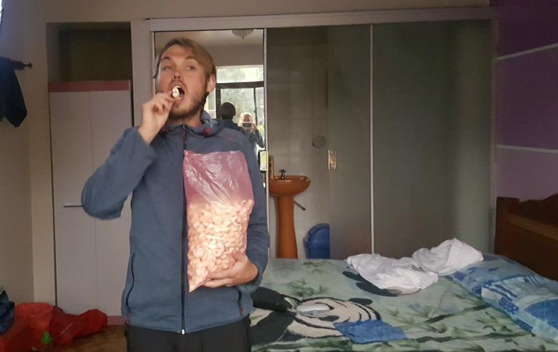 Wobei, eins fehlt noch. An der Straße stehen überall riesige Säcke mit übergroßem Mais oder Riesen-Popcorn. Das muss definitiv auch probiert werden. Wir entscheiden uns aber lieber für die...