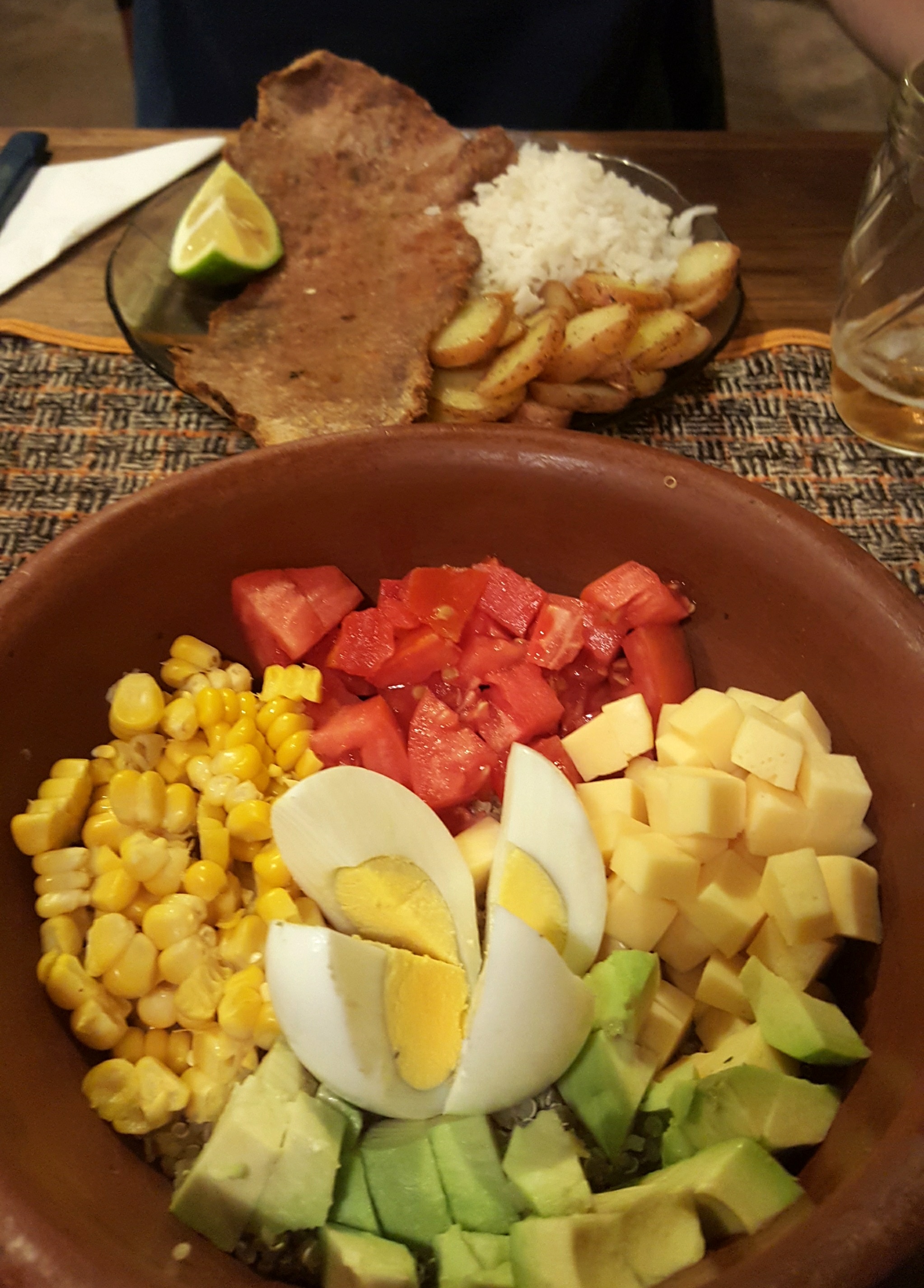 Suppen sind ein wichtiger Bestandteil der Ernährung, vor jedem Hauptgericht gibt es eine Suppe. Mal cremiger, meist aber eher wie ein Eintopf, was Thomas immer wieder gefreut hat. Meist mit Quinoa. Locro, ein Eintopf ist eine der Spezialitäten.
