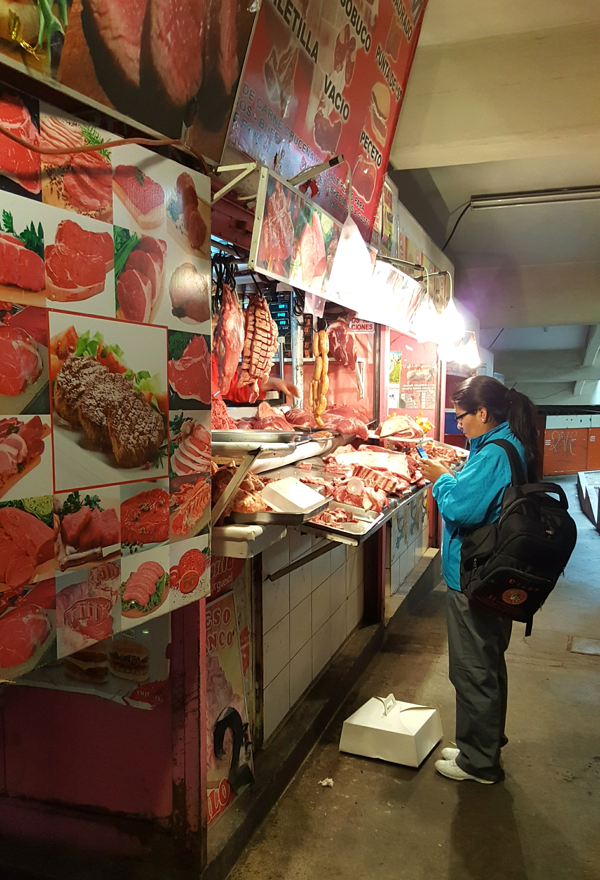 Tja, und damit sind wir beim heiklen Punkt Lebensmittelhygiene angekommen. Die gibt es in Bolivien so gut wie nicht. Den Anfang nimmt das Ganze schon auf dem Markt, wo das Fleisch offen den Tag über herumliegt. Jeder kann sich das gewünschte Stück mit bloßen Händen abschneiden und vom Verkäufer abwiegen lassen (natürlich ohne Händewaschen).