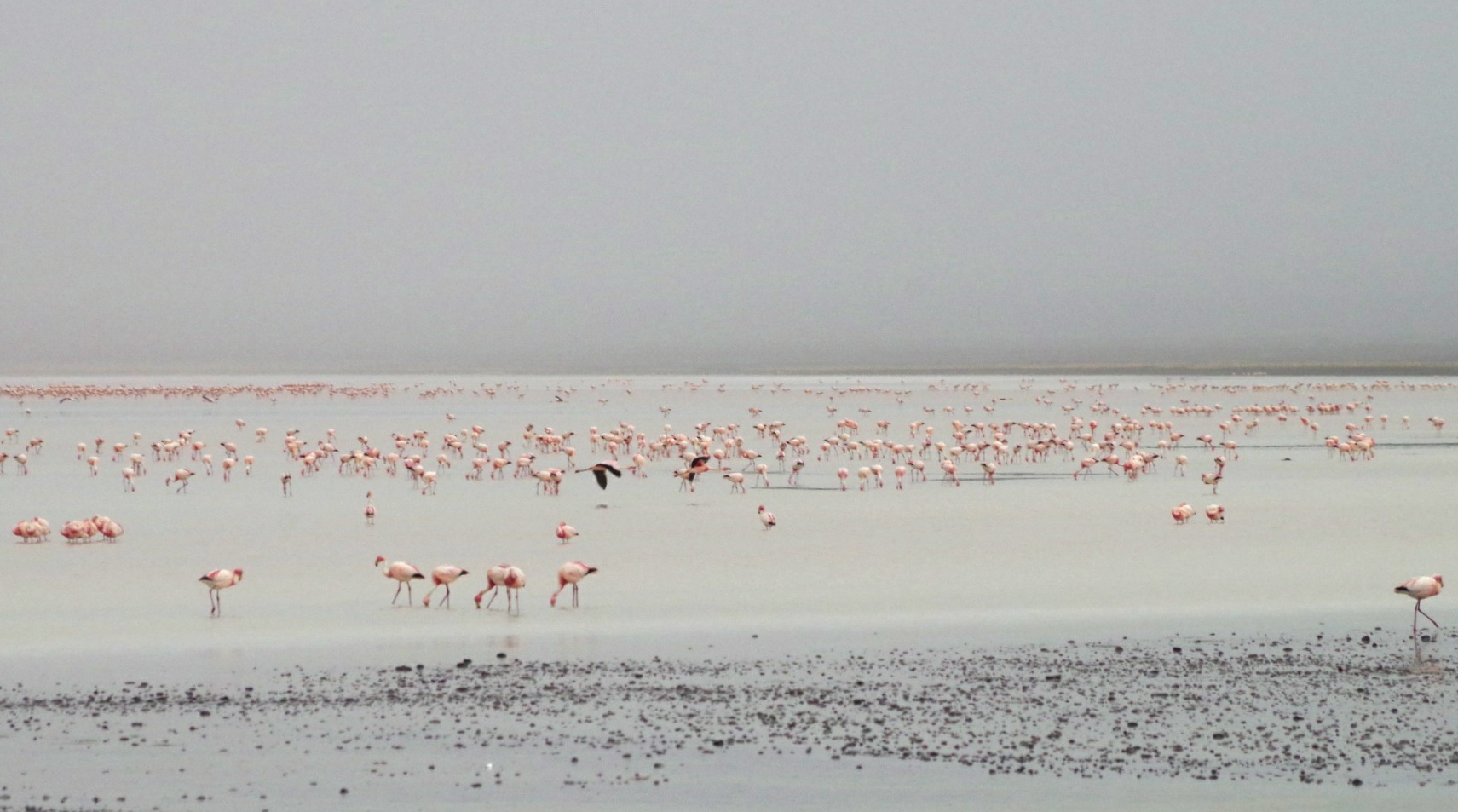 Und wenn man dann dort oben umher fährt und auf einmal Horden von Flamingos in den Lagunen herumstaken, glaubt man sich im falschen Film. Irgendwie haben diese langbeinigen Vögel hier eine Nische zum Überleben gefunden.