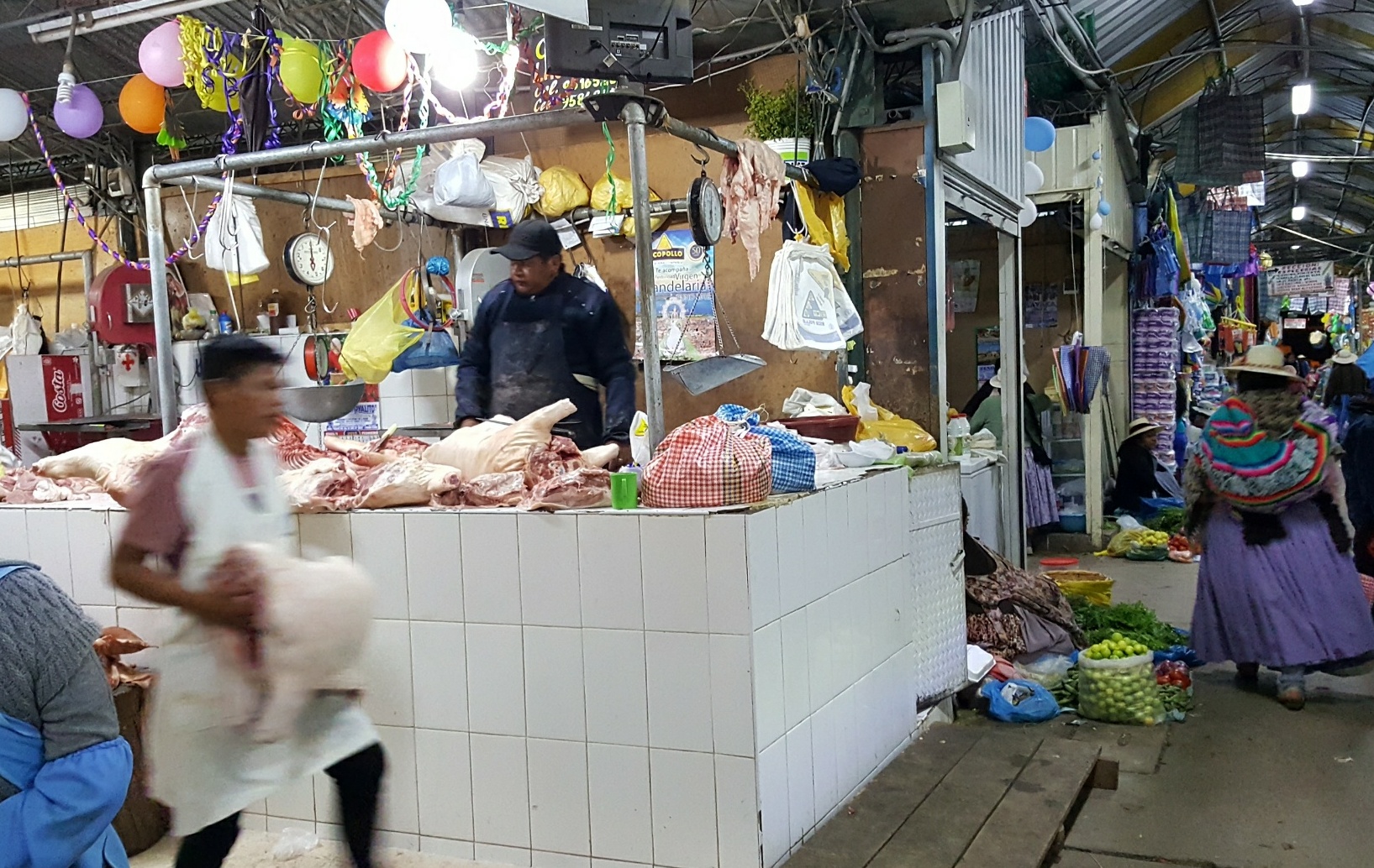 Irgendwann haben wir ausreichend Erkundungsgänge über das Gelände gemacht, um zu wissen, wo hier die Minibusse in die Stadt abfahren, der Busbahnhof liegt nämlich nicht zentral, sondern etwas außerhalb. Ein Taxi zu nehmen wäre auch eine Möglichkeit, da wir uns in La Paz aber ja schon mit den Minibussen erfolgreich durch die Gegend kutschieren haben lassen, versuchen wir auch hier unser Glück. pp Der Minibus zum Plaza de Armas ist schnell gefunden und wir springen auf. Durch das Gewirr der Straßen geht es im Zickzack-Kurs laut GPS grob in die richtige Richtung, an einer viel befahrenen Hauptstraße ruft die Kassiererin uns jedoch auf hier auszusteigen. Wir sind irritiert und machen uns zu Fuß auf den Weg zum Hauptplatz - soweit ist es schließlich nicht mehr.