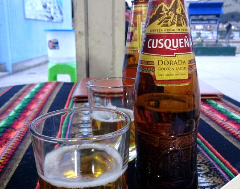 Am Nachbartisch sitzen zwei Peruanerinnen in traditionellen Kostümen, die wohl sehr schmerzende Füße hatten und schon etwas mehr alkoholische Getränke als wir. Denn als sie aufstehen müssen sie sich gegenseitig festhalten und kichern zu unserer Freude fröhlich vor sich hin, als sie aus dem Lokal wanken.