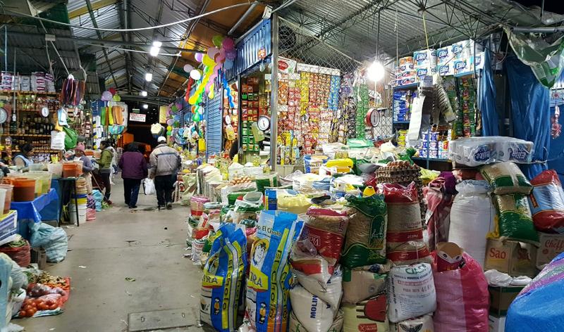 Wir stromern noch etwas durch die Straßen und entdecken einen lokalen Markt in einer Halle. Für uns absolut faszinierend, was hier auf kleinstem Raum angeboten wird.