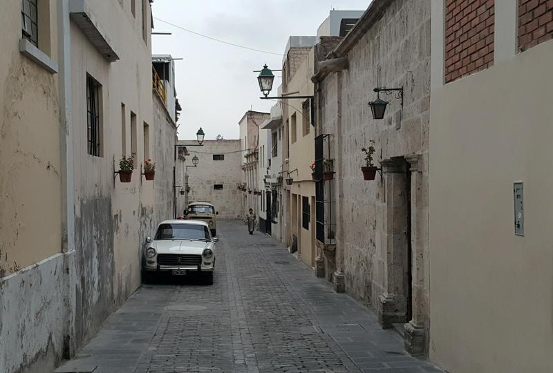 Wir sind zwar müde, aber merken schnell, dass hier bergan laufen und Treppensteigen mit den großen Rucksäcken wegen der geringeren Höhe (Arequipa liegt nur auf 2200 Metern) viel weniger anstrengend ist, als noch in La Paz oder Uyuni.