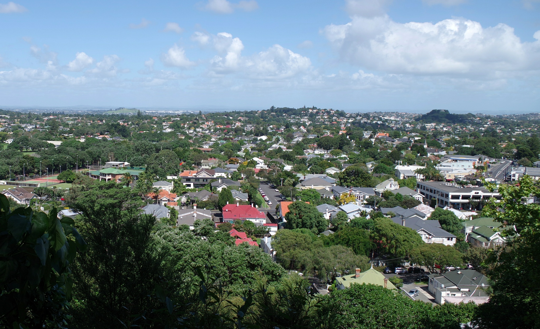 Bis auf den inneren Stadtkern stehen hier in Auckland nur wenige Hochhäuser oder höhere Gebäude. Man hat in der ganzen Stadt das Gefühl im Wohngebiet eines Vorortes zu sein. Reihenhäuser gibt es hier so gut wie nicht. Die Kiwis legen wert auf ein eigenes, freistehendes Haus. Auf diese Weise erstreckt sich die Stadt auch auf eine gigantische Fläche.