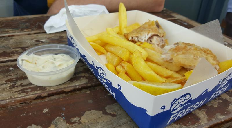 Gut gestärkt laufen wir weiter und finden uns um die Ecke gleich auf der Hafenpromenade wieder, auf der sich ein Fischrestaurant neben dem nächsten befindet und die Touristen ihren Weißwein zum Fisch schlürfen. Wir sind ganz froh um unsere Fish and Chips und setzen uns ein paar Minuten ans Wasser und beobachten...