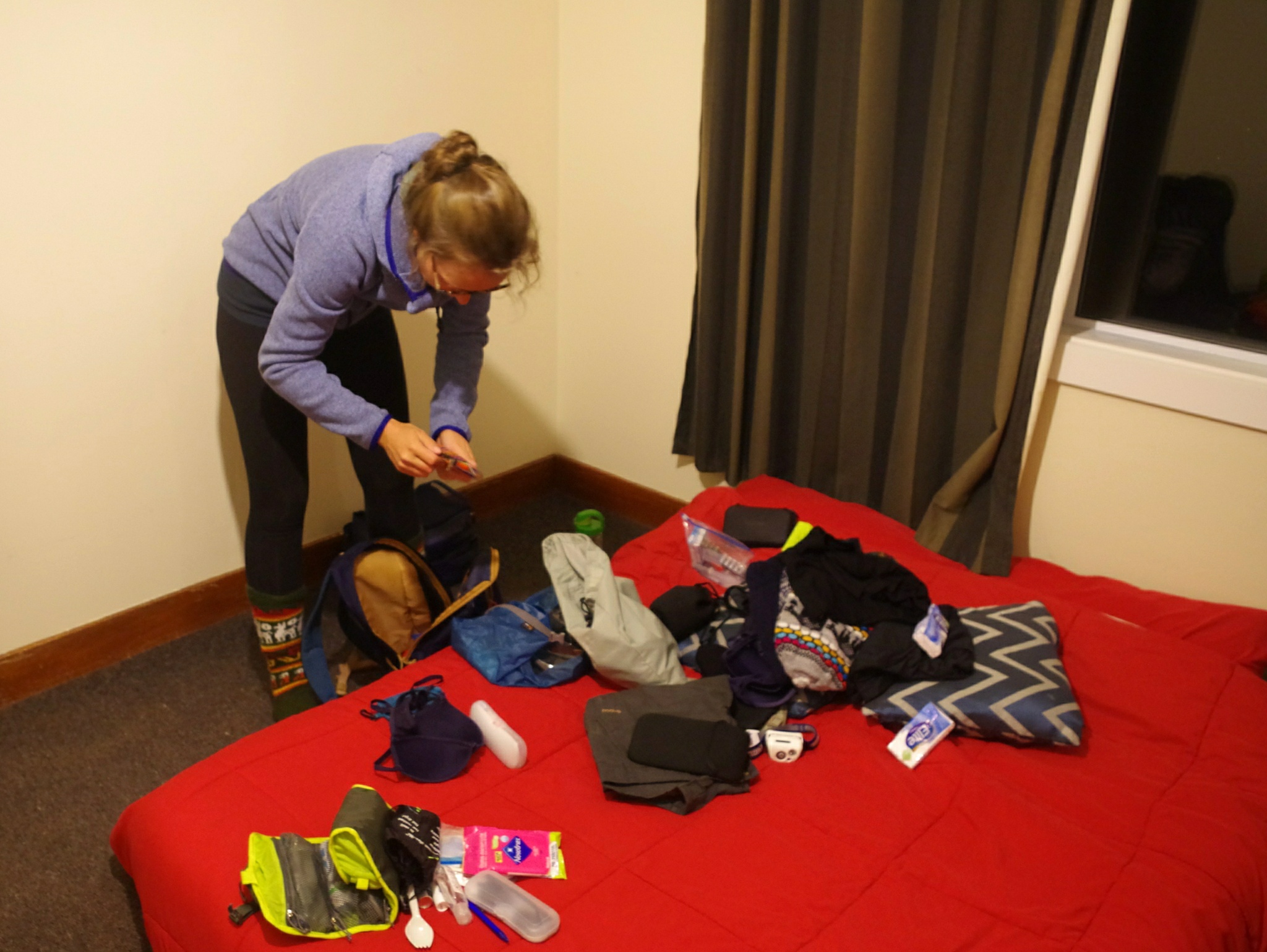 Die Befürchtungen einer zweiten kalten Nacht waren zum Glück völlig unbegründet. Nicht, dass wir eine unserer Zwiebel-Schichten wieder ausgezogen hätten, nur die Daunenweste blieb über Nacht unbenutzt. Nach der entspannenden und warmen Nacht ist Pia wie immer zuerst auf den Beinen...