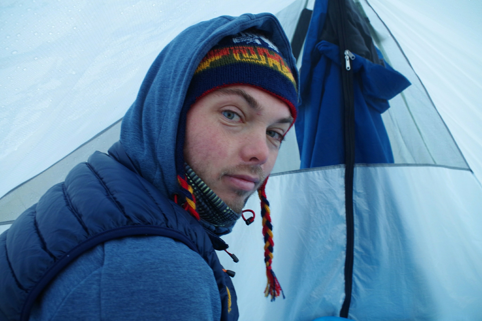 Die Nacht ist kalt. Sehr kalt. Zumindest in unseren Schlafsäcken. Es friert zwar nicht, aber der Dauerregen die ganze Nacht über macht die Sache nicht besser. Vermutlich sank das Thermometer gerade mal auf 5 Grad, aber es reicht, dass ich nachts irgendwann tatsächlich meine neue Daunenweste aus der Tasche krame und überziehe. Eine lange Hose wäre auch hilfreich gewesen, aber weder abends noch nachts hatte ich Lust die abgezippten Beine meiner Hose wieder dran zu basteln - war dumm, merke ich selber.