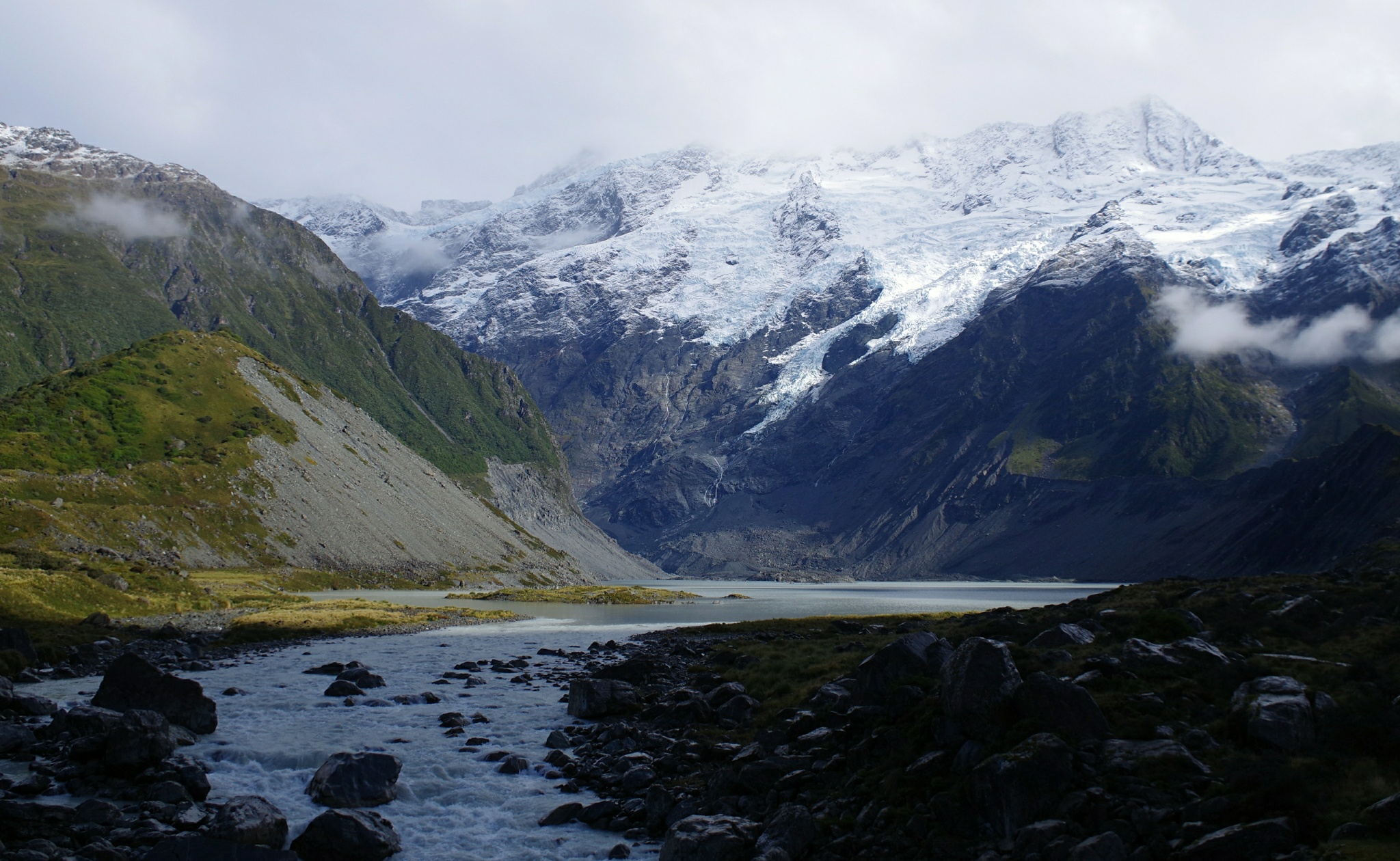 So bleibt am Nachmittag sogar noch genug Zeit um eine kleine Wanderung am nahe gelegenen Tasman Lake und dem gleichnamigen Gletscher zu unternehmen.