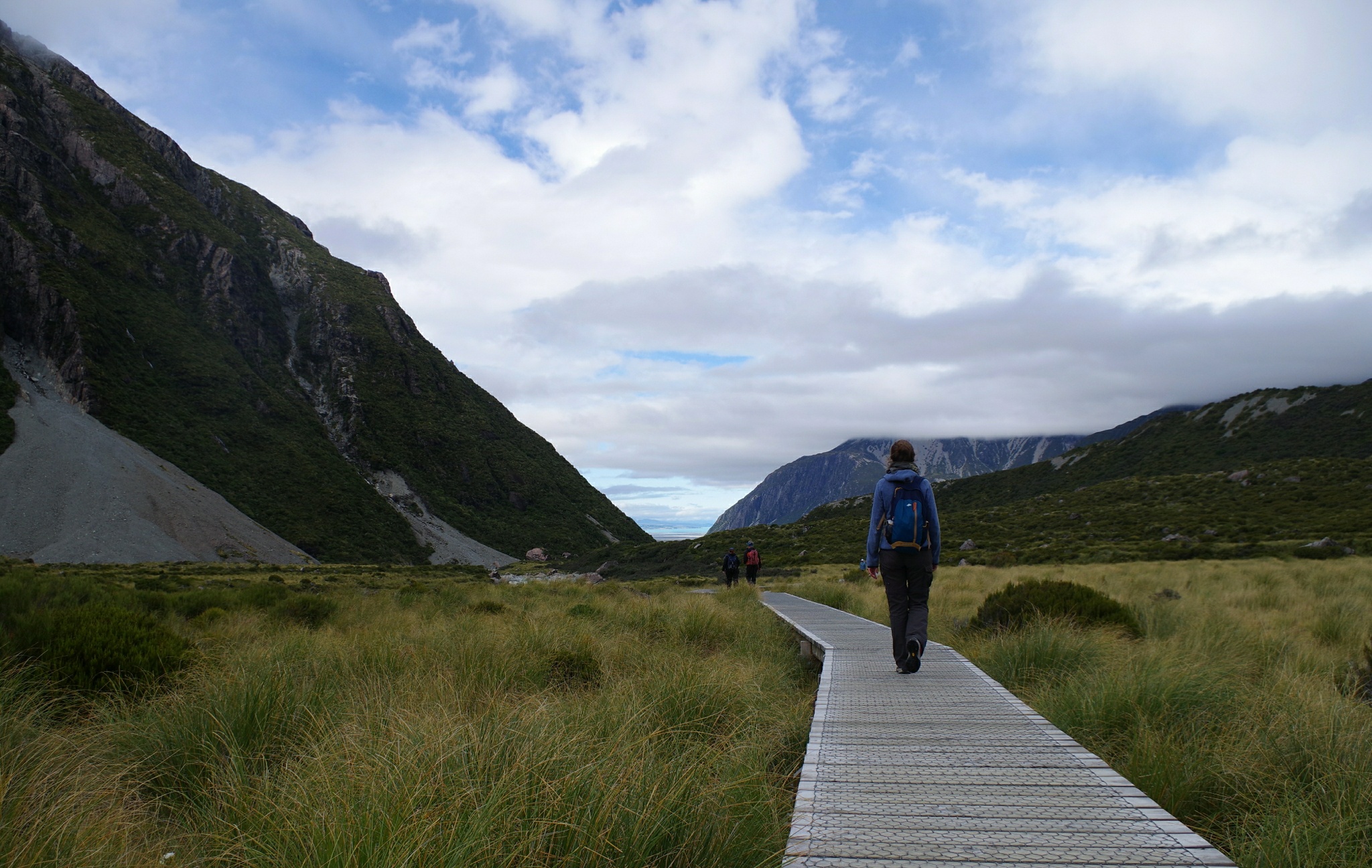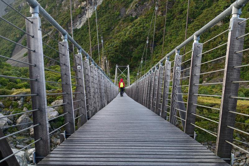 Am Fuße des Mt. Cook besuchen wir erst einmal das Visitor Center und erkundigen uns ein wenig. Auf der Karte habe ich einen See zu einer Hütte direkt neben dem Gletscher gesehen, den man heute noch erreichen könnte. Allerdings hat die Hütte nur drei Betten und wenn jemand vor uns da wäre, könnte es sein, dass wir da oben im Zelt übernachten müssten - eine kalte Vorstellung. Zum Glück fragen wir nach und bekommen zur Antwort, dass der Weg wohl langweilig sei, da man zwar direkt neben dem Gletscher laufe, aber außer Unmengen von Schotter auf dem Eis wohl nichts weiter sehen könne.