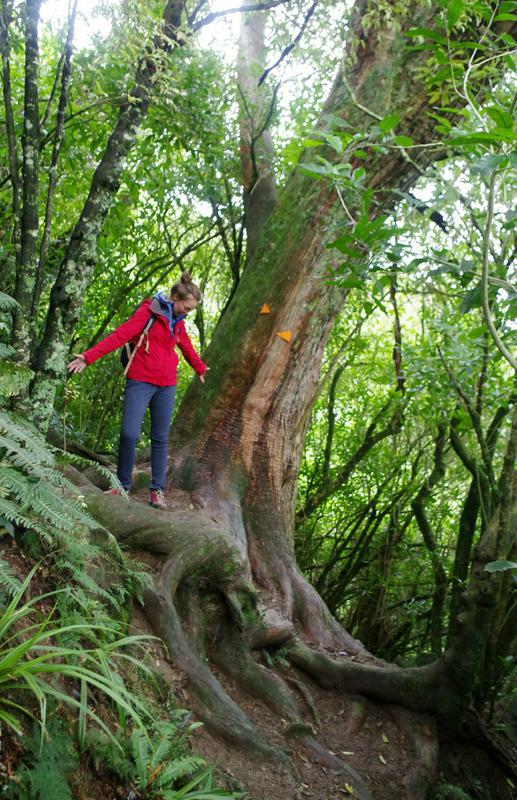 Der Platz hier oben ist schon besetzt, also machen wir uns weiter auf den Weg nach unten. Ich ärgere mich etwas über die fehlende Aussicht und nehme mir vor, dass wir demnächst alle Wege in denen "Wald" vorkommt vermeiden. Pia dagegen findet es weniger schlimm und bewundert riesige Bäume, Moos, Farne, Vögel und die unterschiedlichen Vegetationen. Nach drei Stunden und nur 7,7 km stehen wir wieder auf dem Parkplatz und wechseln erst einmal unsere matschigen Schuhe, bevor wir weiter fahren.