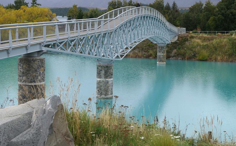 Nach dem Essen wird mit Seewasser gespült, bevor wir dem Seeufer zum Mount Cook folgen. Der Parkplatz hier wird langsam immer voller und wir überlassen das Seeufer zwei Motorradfahrern, die auch über den Fahrradweg runter gefahren sind.