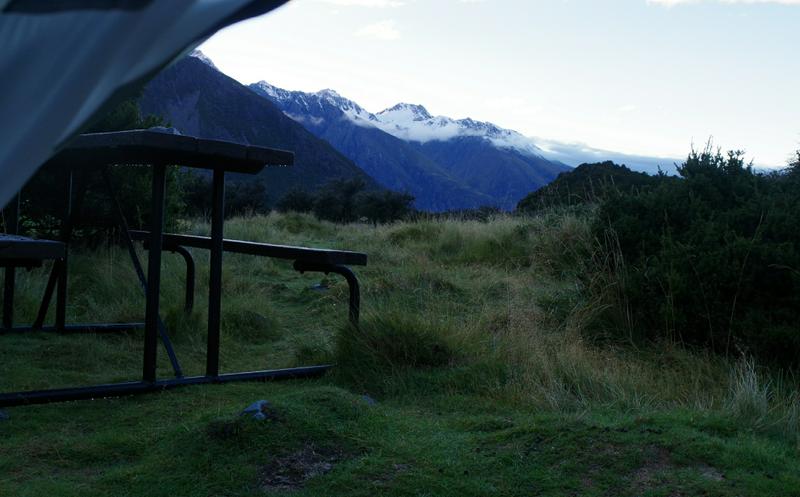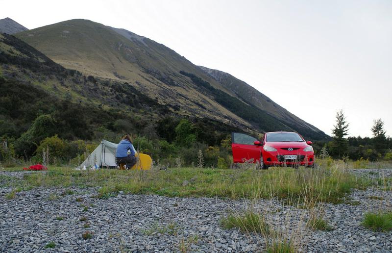 Mit dieser Auskunft fällt die Entscheidung auf dem DOC-Campingplatz quasi nebenan zu übernachten, der liegt nicht ganz so hoch wie die Hütte und Plätze gibt es anscheinend auch genug.