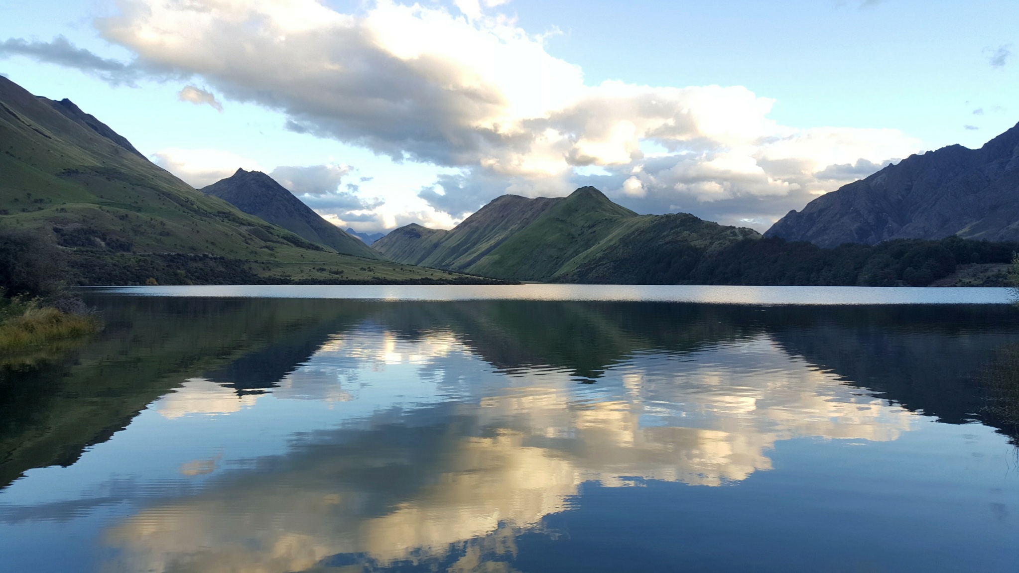 Mittlerweile ist schon Nachmittag und wir verlassen den See, um über einige Serpentinen den 200 Meter höher gelegenen Campingplatz am Moke Lake anzusteuern. Von hier aus sind es zwar noch immer knappe 2 Stunden Fahrt über Schotterpisten zum Eingang des Greenstone-Caples Track, aber die geplante erste Wanderetappe ist kurz und der Campingplatz am Moke Lake scheint es wert zu sein.