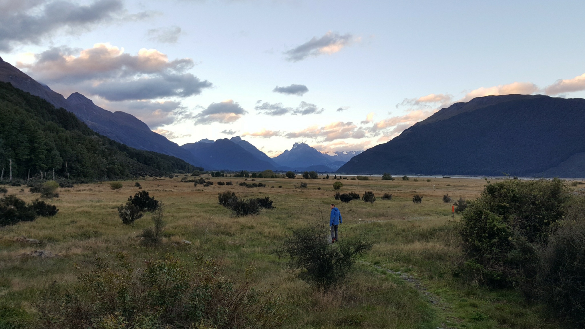 Zuversichtlich, dass wir die nächsten Tage wandern gehen können, frühstücken wir im etwas windgeschützten Cooking-Shelter, bevor wir Ronny die Serpentinen wieder herunter jagen und den großen See umrunden, um zum Trail zu gelangen. Die Fahrt zieht sich deutlich länger als gedacht, insbesondere durch einen erneuten Abstecher in Richtung Queenstown bis wir wieder Handyempfang haben und ein letztes Mal das Wetter für die nächsten Tage checken können.