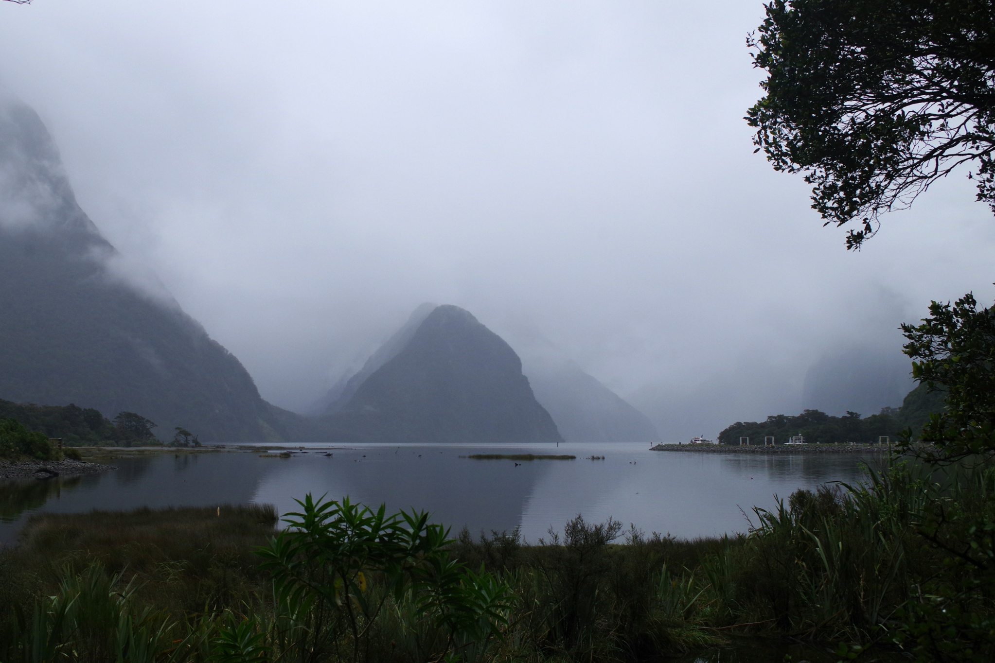 In Milford Sounds angekommen, suchen wir uns einen freien Parkplatz inmitten der Massen an Autos und Campern und...