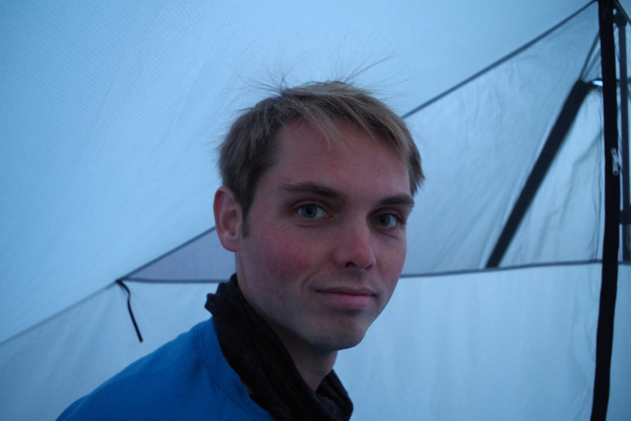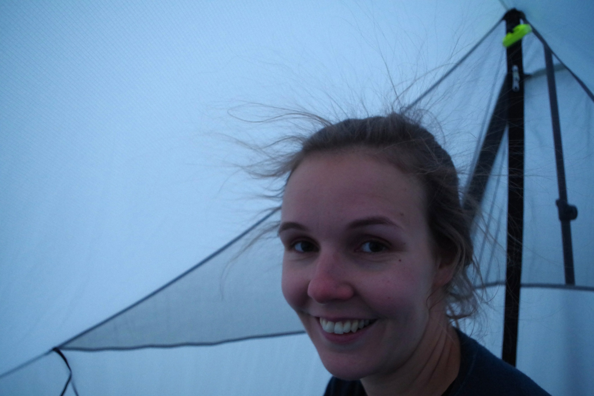 Irgendwann zieht unangekündigt ziemlich böiger Wind auf und rüttelt ordentlich am Zelt. Damit haben wir nicht gerechnet und auch die Heringe waren schonmal tiefer im Boden. Die richtige Wahl wäre gewesen sofort aufzustehen, die Heringe noch weiter in den Boden zu treiben und mit zwei weiteren Heringen das Zelt zusätzlich abzuspannen. Aber im Halbschlaf denke ich nicht so weit und wir hoffen, dass das Zelt schon hält.