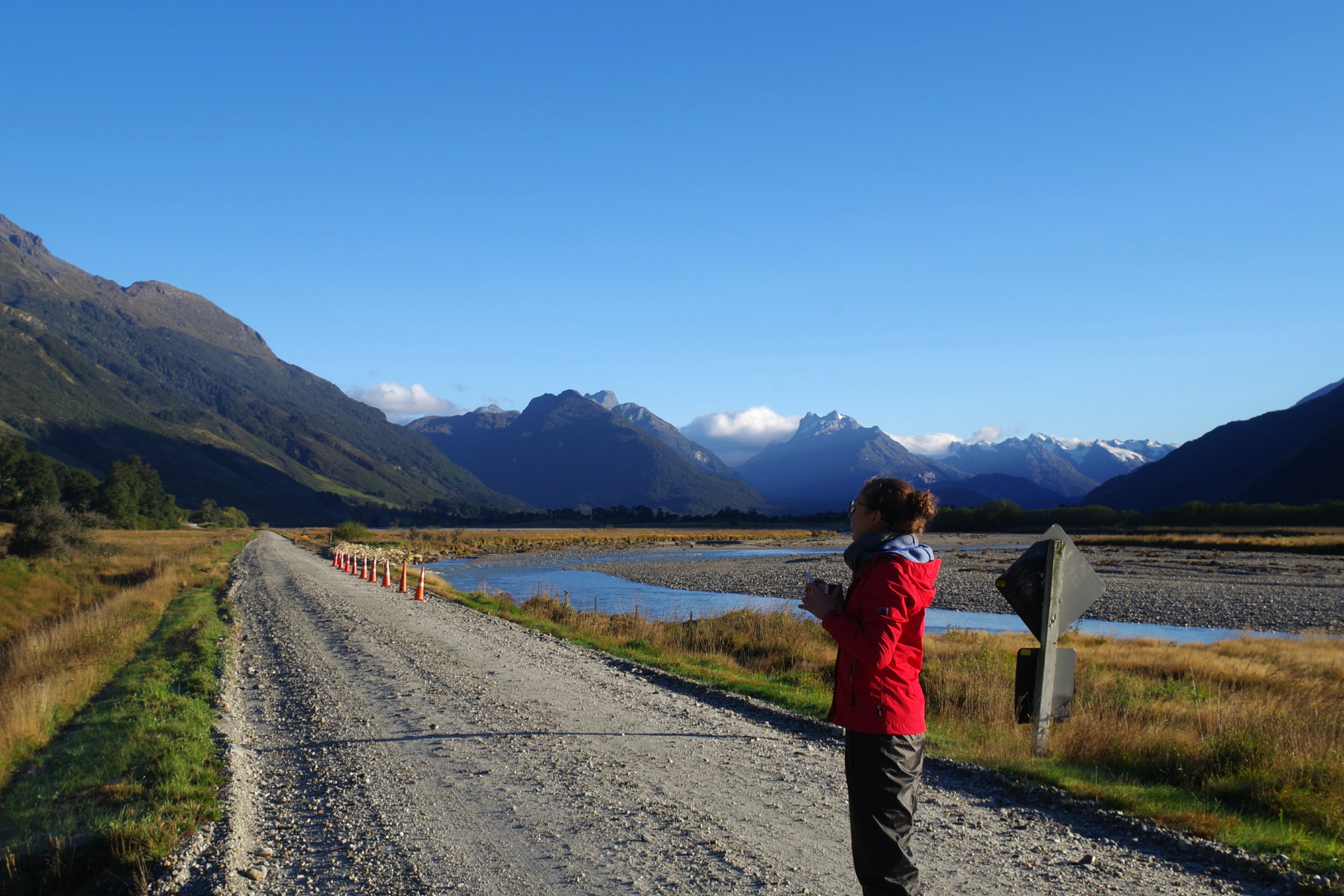 Hinter Queenstown wird es etwas ruhiger, man muss allerdings auf die Rennradfahrer achten, die auf den schmalen Straßen neben dem üblichen Verkehr an Campern und Wohnmobilen unterwegs sind. Wieder frage ich mich, wie man daran Spaß haben kann - ich hätte ständig Angst überfahren zu werden und bin froh, dass ich mit dem Mountainbike immer einen großen Bogen um viel befahrene Straßen machen kann.