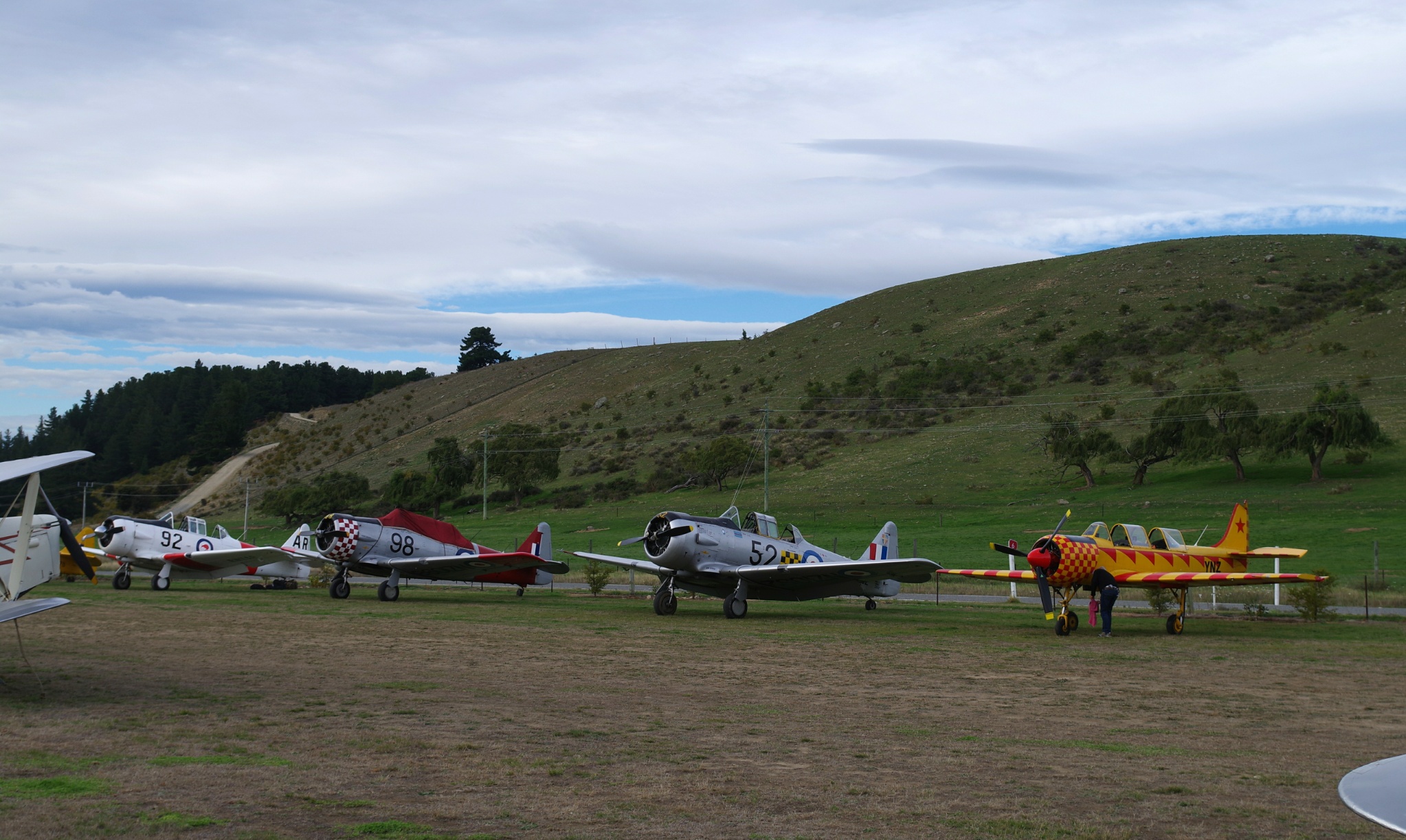 Den Tag verbringen wir weitestgehend im Auto, um die 220 km an die Westküste zurück zu legen. Als neben der Straße auf einmal ein Flugfeld mit Unmengen an alten Flugzeugen auftaucht, die reihenweise die Startbahn verlassen, halten wir an. Hier war das Wochenende über das Wanaka-Airport Race, eine Flugshow. Heute ist Abreisetag und wir schlendern entlang des Rollfeldes und bestaunen...
