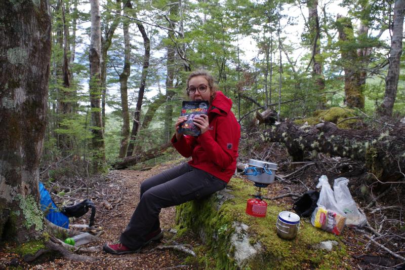 Das mit dem Regen hat sich schnell erledigt und weiter unten finden wir einen bequemen Baumstamm und schmeißen den Kocher an.