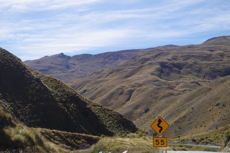 Hinter Queenstown, das wir nur mit kurzem Halt am Visitor Centre durchqueren, biegt ein "Scenic drive" links in die Berge ab. So kriechen wir hinter Wohnmobilen die Serpentinen nach oben - nicht, dass Ronny schneller fahren könnte.