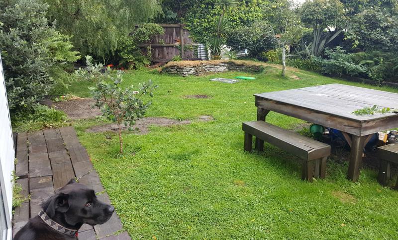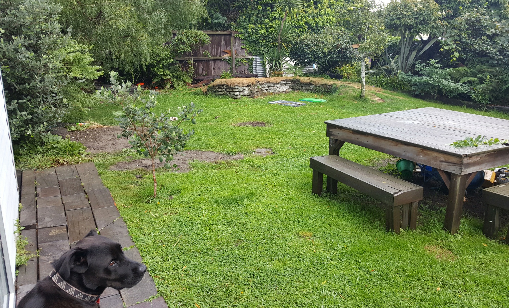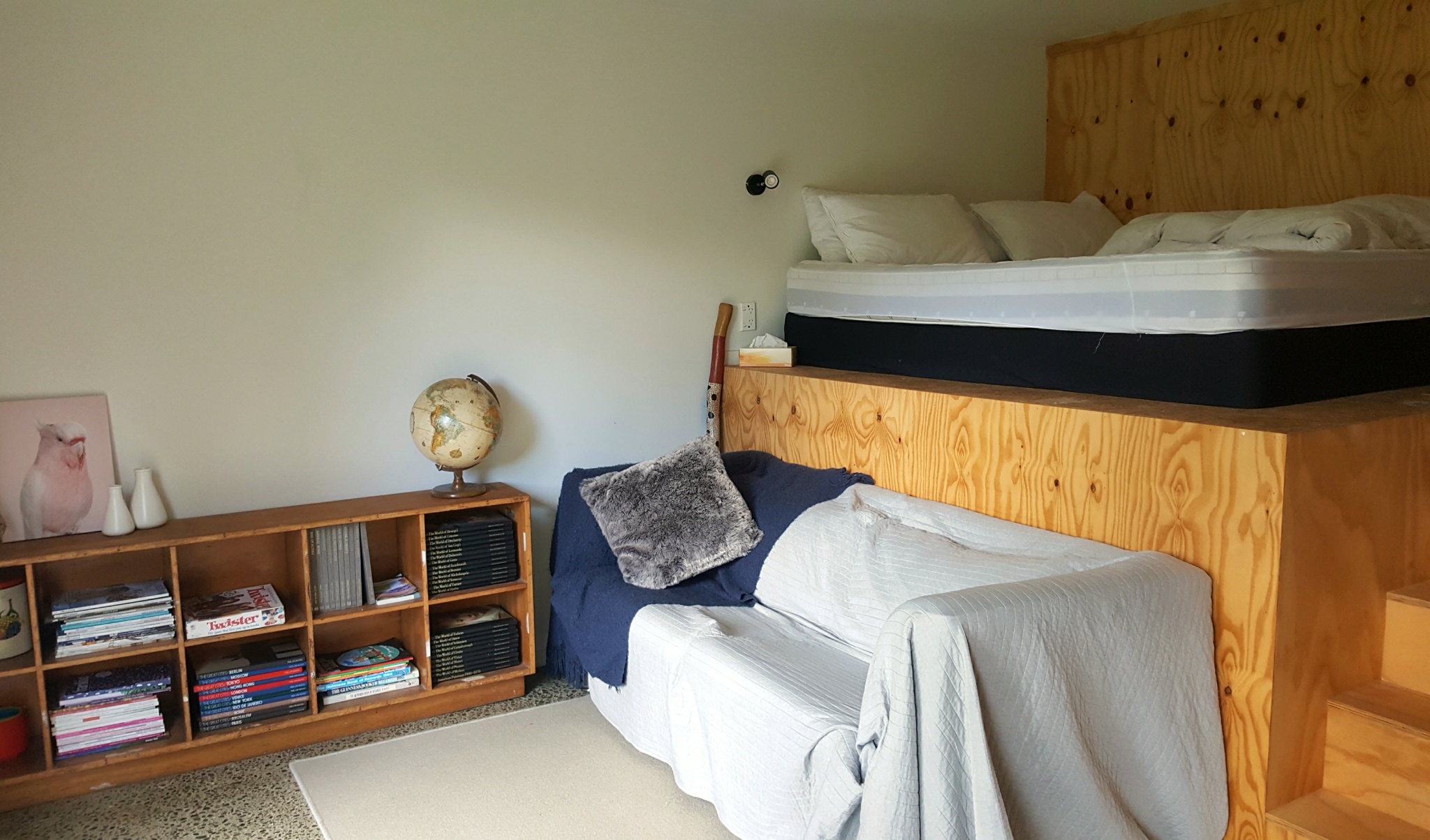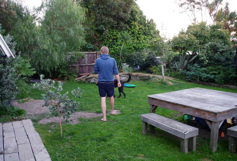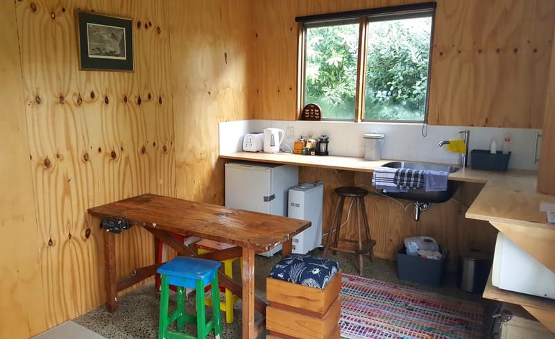 Am nächsten größeren Ort steht wieder ein Sendemast und auf dem Handy wartet die erfreuliche Botschaft, dass wir unser Zimmer bzw. unseren Garten-Bungalow ab nachmittags beziehen können. Glück gehabt. Das Timing ist perfekt, denn genau um diese Zeit haben wir die 260 km lange Strecke hinter uns und stehen vor der Hauseinfahrt. Unsere Gastgeber sind leider nicht da, aber unser Bungalow ist wie angekündigt offen (bzw. gar nicht abschließbar - in Neuseeland nicht Neues) und wir werden freundlich vom vierbeinigen Familienmitglied begrüßt. Schnell schaffen wir all unser Geraffel aus Ronny in unsere gemütliche Unterkunft für die nächsten Nächte.
