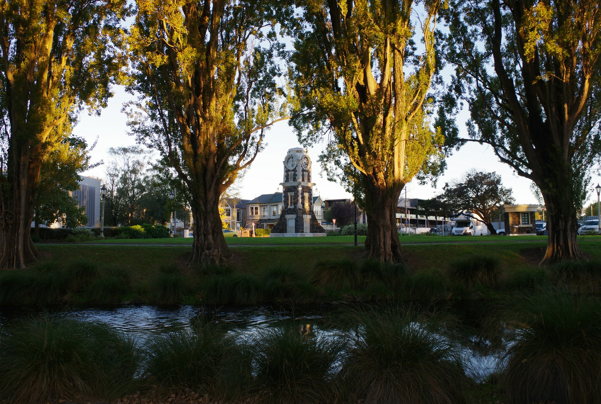 Nach einer halben Stunde Fahrt steigen wir mitten im weitläufigen Hagley Park aus dem Bus und schlendern bei bestem Wetter die letzten Meter in Richtung Innenstadt.