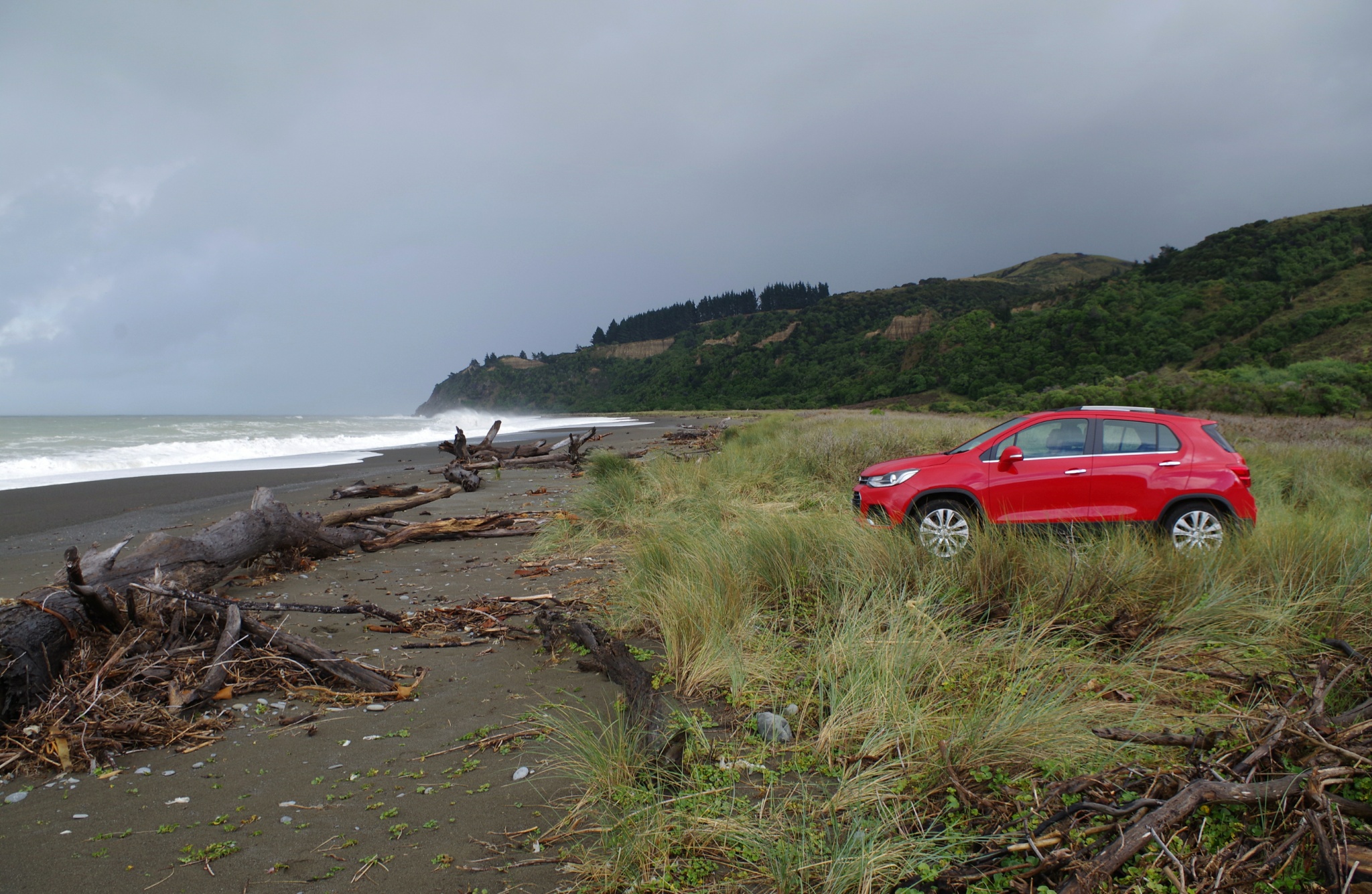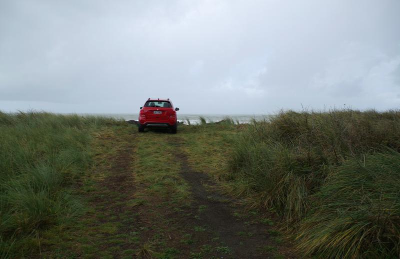Da wir die ganze Zeit an der Küste entlang fahren, sind einige Abstecher zum Strand aber quasi unvermeidbar. Den Ersten unternehmen wir nach knapp zwei Stunden Fahrt. Irgendwann stehen wir vor einem Tor im Naturschutzgebiet und dahinter geht es über einen nassen Feldweg den Hang herunter zum Wasser. Scheinbar dürfen wir durch, also Tor auf und runter - Was mit Ronny ein kleines Abenteuer gewesen wäre, ist mit einem SUV dagegen ein Kinderspiel. Mit Rolf wären wir sicher auch durch die Furten zum Greenstone-Caples Track gekommen...