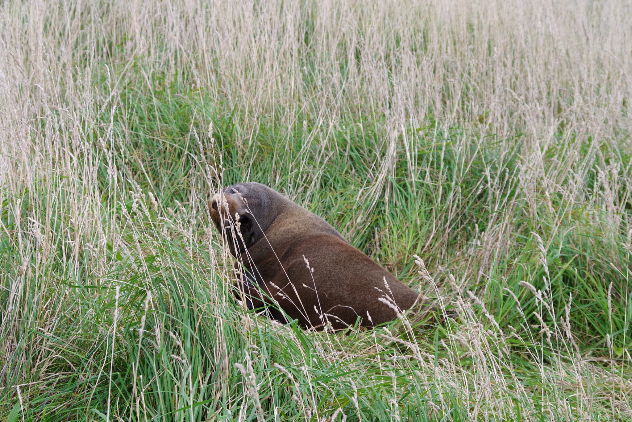 Aber alle dösen friedlich in der Sonne und scheinen sich nicht an uns zu stören, manche werden gar nicht erst wach, als wir vorbei gehen. Allerdings liegen nur vereinzelt ein paar Robben neben dem Weg,...