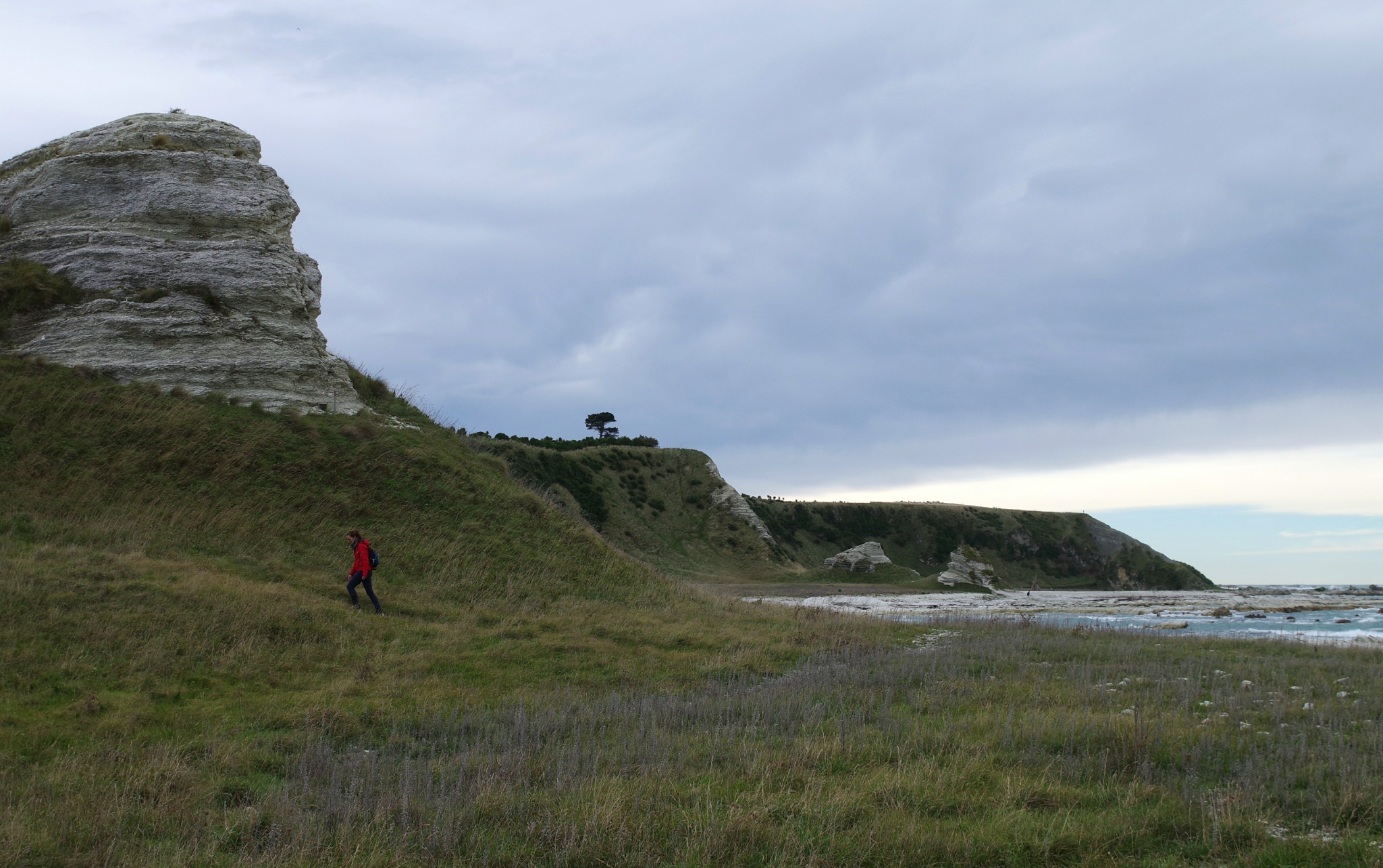 Am anderen Ende der Bucht knickt der Weg ab und führt die Steilküste hinauf.