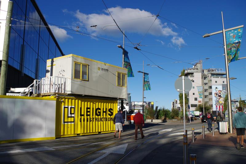 Die ehemalige Containermall, die die letzten Jahre feste Ladenzeilen ersetzt hat, ist mittlerweile allerdings verschwunden.
