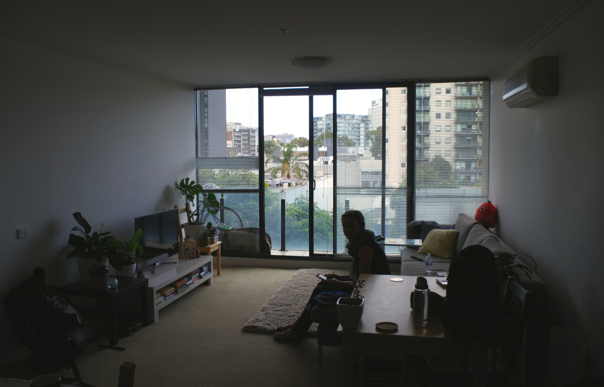 Unser Gastgeber holt uns im Foyer ab und bringt uns in die Wohnung. Eigentlich vermietet das Pärchen nur ein Zimmer in ihrer Wohnung, aber als wir ankommen stehen die beiden mit gepackten Koffern vor uns. Nachdem wir uns eine Weile unterhalten haben, verabschieden sich die zwei auch schon und machen sich auf den Weg zu einer Hochzeit in Sydney am kommenden Wochenende.
