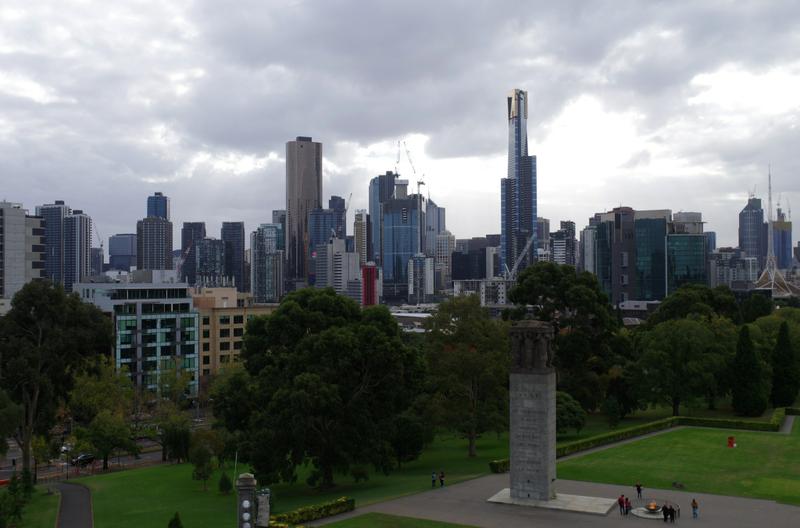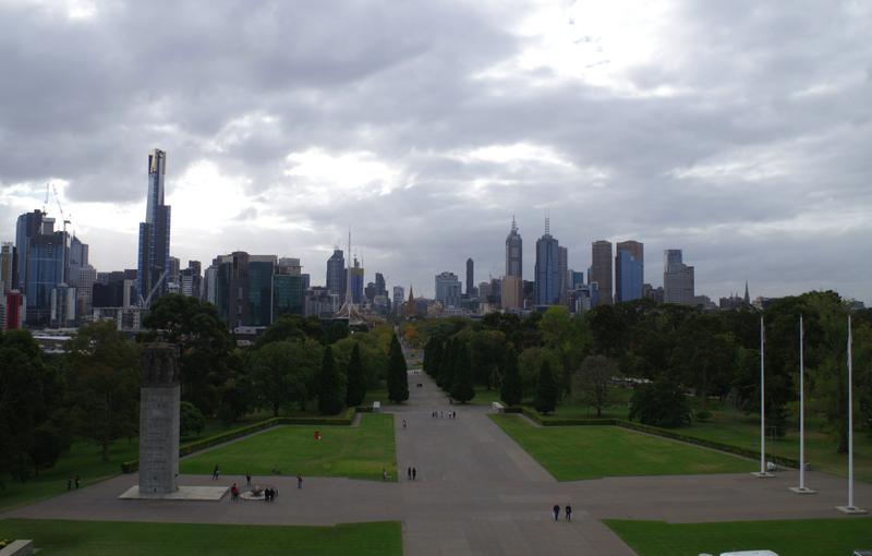 Als wir anschließend aus dem Bahnhof gehen, um unsere Straßenbahnlinie zu finden, stellen wir fest, dass die gesamte Innenstadt für die ANZAC-Day-Parade abgesperrt ist und unsere Straßenbahn erst in ein paar Stunden wieder fährt. Wir könnten zwar die letzten Kilometer zur Unterkunft zu Fuß gehen, aber mit den dicken Rucksäcken vorne und hinten durch das Gedränge auf den Gehwegen zu laufen liegt uns dann doch nicht so. Also bahnen wir uns einen Weg durch die Menschen zurück in den Bahnhof und fahren ein paar Stationen weiter. Dort sind wir zwar immer noch mitten im Gedränge, aber immerhin näher an unserer Unterkunft, die leider genau neben dem ANZAC-Denkmal liegt. Als wir losgehen, kommen uns immer wieder Leute in Uniformen oder mit Musikinstrumenten engegen, die Parade ist scheinbar gerade vorüber.